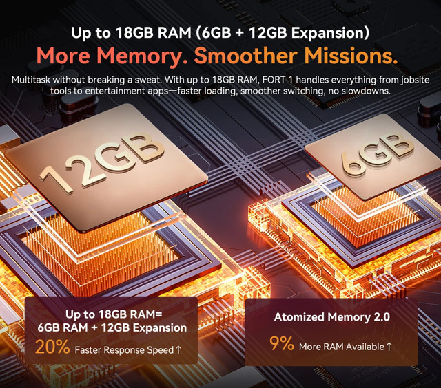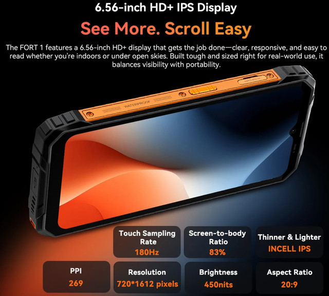 Blackview FORT 1 — міцний та надійний смартфон для роботи та активного відпочинку. Посилений корпус із вологозахисною збіркою відповідає стандартам IP68, IP69K та MIL-STD-810, витримуючи падіння, вібрацію, пил, дощ та перепади температур. Пристрій впевнено працює там, де звичайні смартфони виходять з ладу - на будівництві, аграрній сфері, службах доставки, охороні, на складах і в польових умовах. Смартфон оснащений 6,56-дюймовим IPS-дисплеєм з роздільною здатністю 1612720 пікс і частотою 90 Гц. Яскрава та контрастна матриця забезпечує чітке відображення тексту, карт та відео, а міцне захисне скло підвищує стійкість екрана до пошкоджень. Формат екрану зручний для роботи однією рукою, так і для перегляду контенту або навігації. Смартфон побудований на базі 8-ядерного процесора Unisoc Tiger T615, що забезпечує стабільну роботу інтерфейсу та швидку реакцію під час запуску додатків. Смартфон оснащений 6 ГБ оперативної пам'яті, що дозволяє комфортно працювати в багатозадачному режимі без відчутних затримок, а вбудоване сховище обсягом 256 ГБ надає достатньо місця для фото, відео, документів та програм. За потреби пам'ять можна розширити за допомогою карт microSD об'ємом до 2 ТБ, що робить пристрій зручним для тривалого зберігання великих масивів даних. Працює смартфон під керуванням Android 15 з фірмовою оболонкою DokeOS, що додає розширений функціонал та покращену навігацію. Основна камера 16 МП+2 МП забезпечує якісні знімки при денному освітленні, дозволяє документувати об'єкти, фіксувати важливі деталі на фото, надсилати візуальні звіти та сканувати QR-коди. Фронтальна камера 8 МП підійде для відеодзвінків, онлайн-конференцій та іншої віддаленої комунікації, забезпечуючи чітке зображення та природне перенесення кольорів. Blackview FORT 1 оснащений надійним акумулятором ємністю 10000 мАг, який забезпечує тривалий час роботи без заряджання, що особливо важливо в польових умовах або при тривалих виїздах. Підтримка режиму енергозбереження та швидкого заряджання 18 Вт дозволяє швидко відновити запас енергії та повернення до роботи. Смартфон обладнаний сучасними комунікаційними модулями: підтримка двох SIM-карток, робота в мережах 4G, а також Bluetooth, GPS та Wi-Fi забезпечують стабільний зв'язок у будь-яких умовах. Вбудований модуль NFC дозволяє безконтактні платежі та використання пристрою у системах контролю доступу. Все це перетворює Blackview Fort 1 на надійний інструмент як для повсякденного зв'язку, так і для вирішення завдань, що потребують постійного підключення та оперативної передачі даних. ОПЕРАЦІЙНА СИСТЕМА Операційна система — Android 15.0 (DokeOS 4.1) КОРПУС Стандарт захисту — IP68 / IP69K / MIL-STD-810 Захист корпусу — Водозахист, Вологозахист, Пилозахищений, Ударостійкий Матеріал корпусу — Метал, Авіаційний алюміній, Пластик, Полікарбонат, Гума підвищеної міцності та зносостійкості, Скло ЗВ'ЯЗОК Кількість SIM-карт — 2 SIM Формат SIM-карти — Nano-SIM Тип слота SIM-карти — SIM + SIM + MicroSD Стандарти зв'язку — GSM, 3G, 4G (LTE) ЕКРАН Діагональ екрану — 6.56" Тип екрану — IPS Роздільна здатність екрана — 1612х720 пікс Частота оновлення екрану — 90 Гц Щільність пікселів — 269 ppi Захисне скло — Panda Glass ПРОЦЕСОР Процесор — Unisoc Tiger T615 Кількість ядер — 8 Частота процесора — 2.0x 1.8 ГГц Cortex-A75 + 6x 1.6 ГГц Cortex-A55 Графічний процесор — ARM Mali-G57 MP1 ПАМ'ЯТЬ Внутрішня пам'ять — 256 ГБ Оперативна пам'ять — 6 ГБ (+ 12 ГБ віртуальної пам'яті) Слот для картки пам'яті — Є, mic