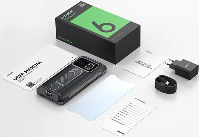 Doogee Fire 6 Max 8/256GB – це потужний та надійний смартфон, призначений для тих, хто цінує продуктивність, автономність та захист. Завдяки сучасним технологіям та екстремальній міцності він ідеально підійде мандрівникам, любителям активного відпочинку та професіоналам, які працюють у складних умовах. Процесор Dimensity 7050, операційна система Android 14 та якісна камера роблять цей смартфон не просто пристроєм зв'язку, а універсальним мобільним інструментом, готовим до будь-яких викликів.Сертифікований за стандартами IP68 та IP69K, цей смартфон пропонує максимальний захист від води та пилу. Пристрій можна занурювати у воду на глибину до 2 метрів терміном до 60 хвилин, а також він стійко переносить попадання води під високим тиском. Додатково корпус смартфона відповідає військовим стандартам MIL-STD-810H, що означає його стійкість до екстремальних температур, ударів, вібрацій і навіть впливу хімічних речовин. Цей смартфон стане відмінним вибором для тих, хто часто працює в екстремальних умовах, чи це будівельні майданчики, гірські маршрути чи походи в дикі ліси. Смартфон оснащений 6.72-дюймовим IPS-екраном з роздільною здатністю 2400х1080 пікселів та частотою оновлення 120 Гц. Такий дисплей забезпечує яскраве, чітке зображення з насиченими кольорами та широкими кутами огляду, що робить перегляд відео, ігри та роботу з додатками максимально комфортними. IPS-матриця гарантує природне перенесення кольорів, а висока яскравість екрану дозволяє без проблем користуватися смартфоном навіть під прямим сонячним промінням. Смартфон Doogee Fire 6 Max отримав додатковий світловий ефект біля камер, що виконує роль датчика. Цей елемент підкреслює не тільки унікальний дизайн пристрою, але й додає функціональність. Цей ефект стає не тільки стильною деталлю, а й корисною функцією, яка робить взаємодію зі смартфоном ще зручнішою та сучаснішою. Однією з унікальних особливостей Doogee Fire 6 Max є вбудований потужний ліхтар, який робить смартфон більш універсальним. Він стане в нагоді в темний час доби, в походах, на риболовлі або в будь-яких екстремальних умовах, коли під рукою немає інших джерел світла. Завдяки високій яскравості ліхтар стане надійним помічником у різних ситуаціях, забезпечуючи максимальний комфорт і безпеку при використанні пристрою. Потужний восьмиядерний процесор Dimensity 7050 з тактовою частотою до 2.6 ГГц забезпечує відмінну продуктивність при виконанні будь-яких завдань, від ігор до багатозадачності. Графічна продуктивність на високому рівні завдяки вбудованому графічному процесору Mali-G68 MC4, що дозволяє комфортно грати в сучасні ігри та використовувати графічно насичені додатки. У поєднанні з 8 Гб оперативної пам'яті та 256 Гб вбудованої пам'яті смартфон забезпечує швидку роботу з додатками і дозволяє зберігати велику кількість даних, включаючи фото, відео і додатки. Doogee Fire 6 Max підтримує розширення пам'яті за допомогою microSD-карток об'ємом до 2 Тб, що дає користувачам ще більше можливостей для зберігання даних. Пристрій також підтримує 5G, 4G та 3G мережі, забезпечуючи стабільне з'єднання з інтернетом навіть у найвіддаленіших місцях. Основна камера з трьома модулями: 50 МП, 20 МП та 8 МП, забезпечує високу якість зйомки в будь-яких умовах, включаючи далекі відстані та слабке освітлення. Камера підтримує записування відео в 4K, а нічний режим дозволяє отримувати чіткі та детальні з