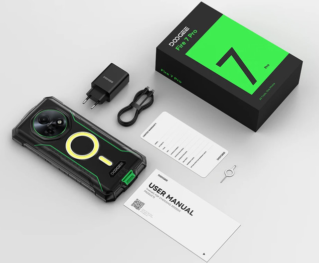 DOOGEE Fire 7 Pro — це сучасний захищений смартфон, створений для активного способу життя, роботи на природі, на будівництві чи складних умовах. Міцний корпус поєднує метал та прогумований пластик, що значно підвищує ударостійкість та довговічність пристрою. Смартфон відповідає міжнародним стандартам IP68/IP69K, що гарантує повну захист від пилу, води та струменів під тиском, а також MIL-STD-810H, який підтверджує стійкість до падінь, вібрацій та екстремальних температур. Така конструкція робить його найнадійнішим спутником для активних подорожей та щоденного використання у жорстких умовах. Fire 7 Pro оснащений великим 6,6-дюймовим IPS-дисплеєм із роздільною здатністю 1612х720 (HD+) та частотою оновлення 90 Гц, що забезпечує чітке, плавне зображення та комфортну роботу навіть під прямими солнечними лучами. Дисплей відтворює широкий спектр кольорів (≈16,7 млн) та захищень Corning Gorilla Glass 5, що підвищує стійкість до царапин та механічних впливів. Смартфон працює на базі 8-ядерного процесора MediaTek Dimensity 6300 (6 нм) з потужною графікою ARM Mali-G57 MP2, що забезпечує стабільну роботу системи, швидкий запуск додатків та комфортну багатозадачність. Fire 7 Pro оснащено 8 ГБ оперативної пам'яті (з можливістю віртуального розширення до ~32 ГБ) та 256 ГБ внутрішньої пам'яті, достатньо великої для фото, відео та програм. Для додаткового обсягу підтримується картка microSD до 2 ТБ. Основна камера 64 МП з підтримкою штучного інтелекту, режимами HDR, Pro, портретного та нічного режимів дозволяє робити якісні та деталізовані знімки в різних умовах. Нічна камера 20 МП Night Vision дає можливість знімати у темряві — чіткі кадри, фото тварин, навколишніх об'єктів чи сцени навіть без зовнішнього світла. Фронтальна камера 16 МП забезпечує гарно деталізовані селфі та чіткі відео для відеодзвінків або стрімів Смартфон має дві потужні кемпінгові ліхтарі загальною яскравістю до 1200 Лм з незалежним управлінням лучами, включаючи режими освітлення, яскравого світла, SOS та таймер, що робить телефон корисним не лише як світло, а як SOS-пристрій у темряві або в польових умовах. Аудіо-система забезпечує гучний, чистий звук для музыки, відео, дзвінків та конференцій. Якість звучання підходить для перегляду відео чи прослуховування музики навіть без навушників. Смартфон оснащений величезною батареєю 13000 мА·год, що забезпечує тривалу автономну роботу — до 69 років в режимі розмови, 39 років в режимі відео, і довгі години в режимі очікування чи музики. Підтримується 33 Вт швидка зарядка, яка оперативно відновлює енергію, а 5 Вт зворотного заряджання (OTG) дозволяє використовувати смартфон як портативний павербанк для інших пристроїв. ОПЕРАЦІЙНА СИСТЕМА Операційна система — Android 15.0 (DokeOS 4.1) КОРПУС Стандарт захисту — IP68 / IP69K / MIL-STD-810 Захист корпусу — Водозахист, Вологозахист, Пилозахищений, Ударостійкий Матеріал корпусу — Метал, Авіаційний алюміній, Пластик, Полікарбонат, Гума підвищеної міцності та зносостійкості, Скло ЗВ'ЯЗОК Кількість SIM-карт — 2 SIM Формат SIM-карти — Nano-SIM Тип слота SIM-карти — SIM + SIM + MicroSD Стандарти зв'язку — GSM, 3G, 4G (LTE), 5G ЕКРАН Діагональ екрану — 6.6" Тип екрану — IPS Роздільна здатність екрана — 1612х720 пікс Частота оновлення екрану — 90 Гц Щільність пікселів — 267 ppi Захист екрану — Panda glass ПРОЦЕСОР Процесор — MediaTek Dimensity 6300 Кількість ядер — 8 Частота процесора — 2x 2.4 ГГц Cortex-A76 + 6x 2.0 ГГц Cortex-A55 Графічний процесор — ARM Mali-G57 MP2 ПАМ'ЯТЬ 