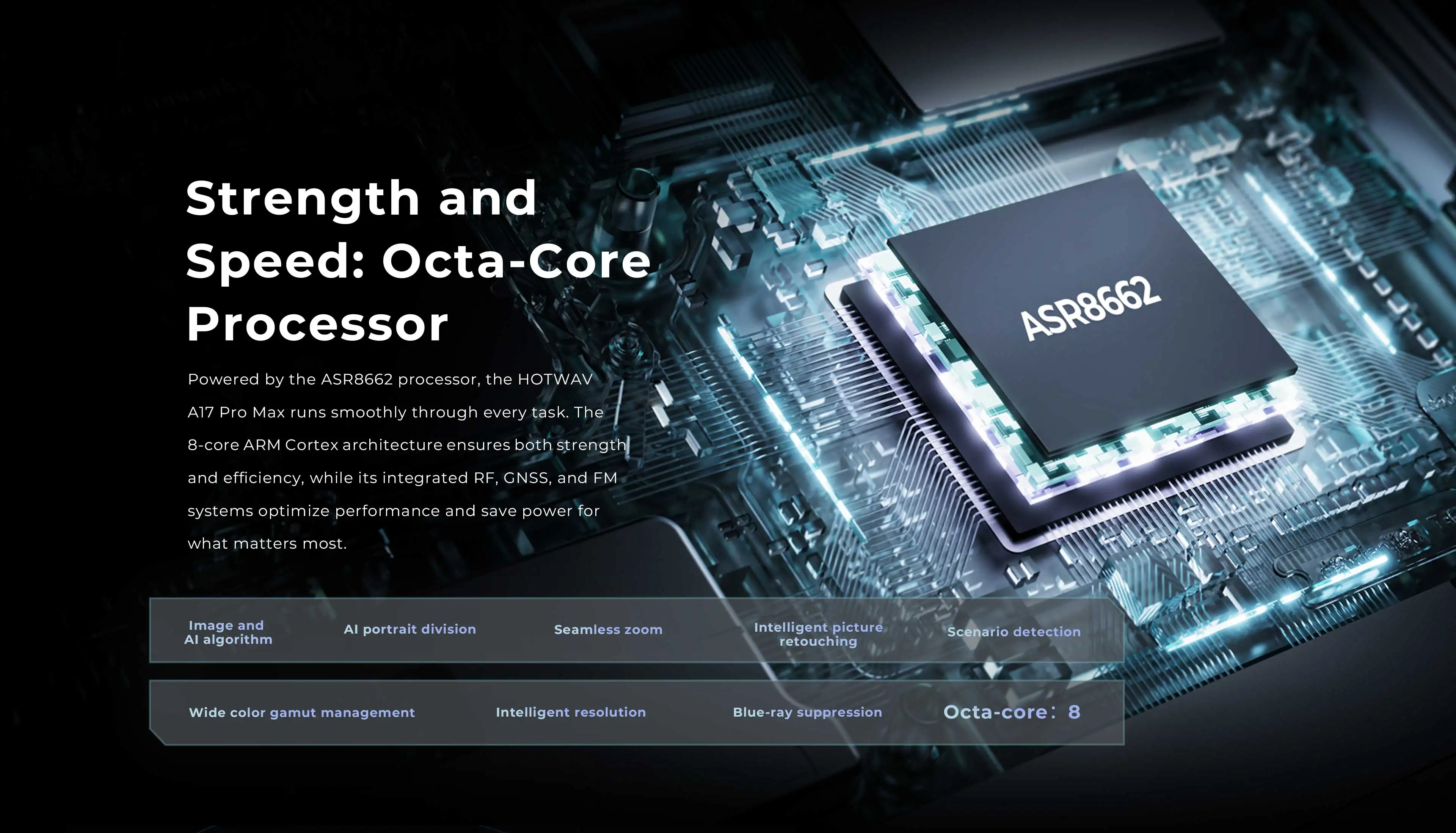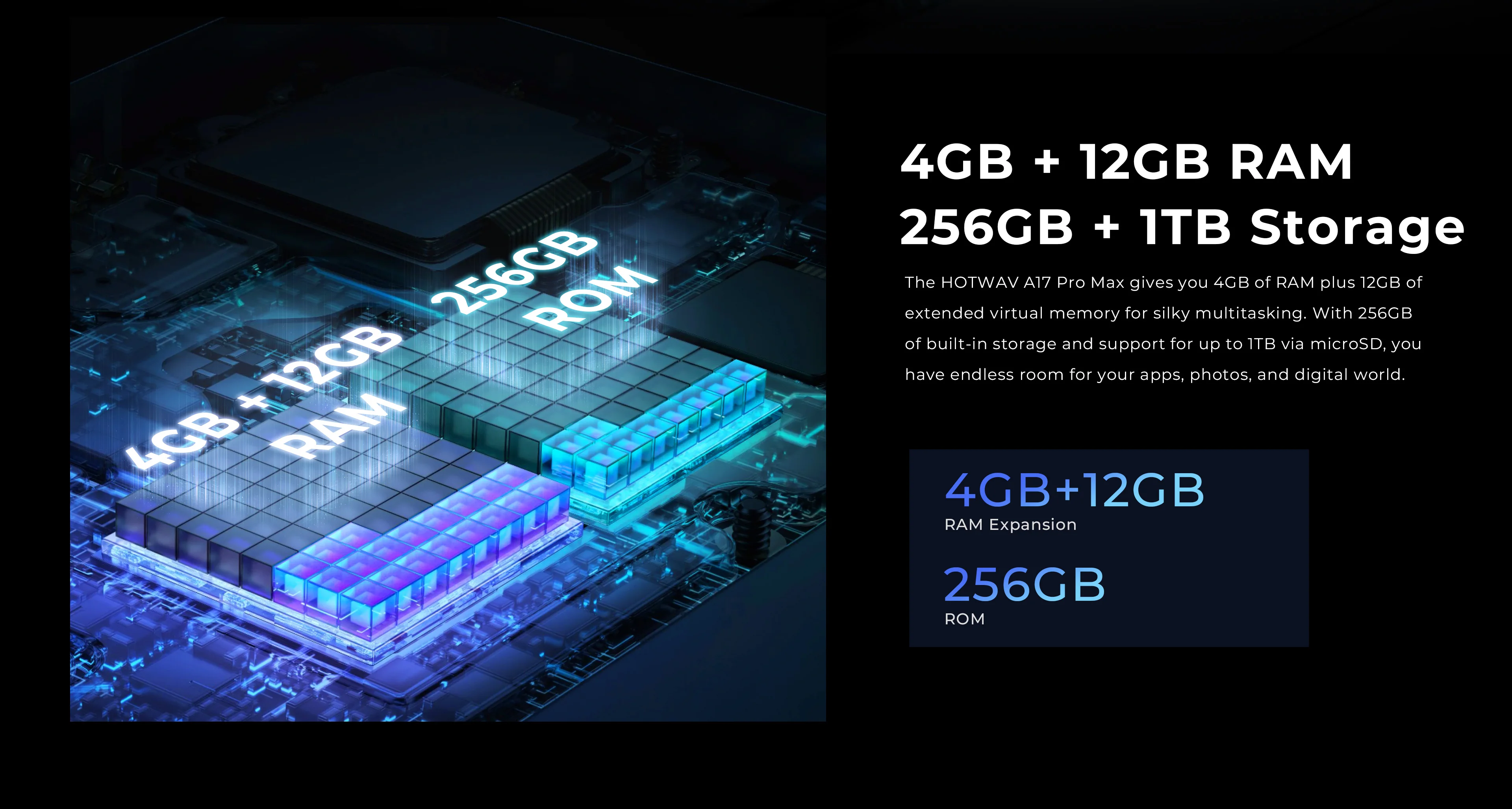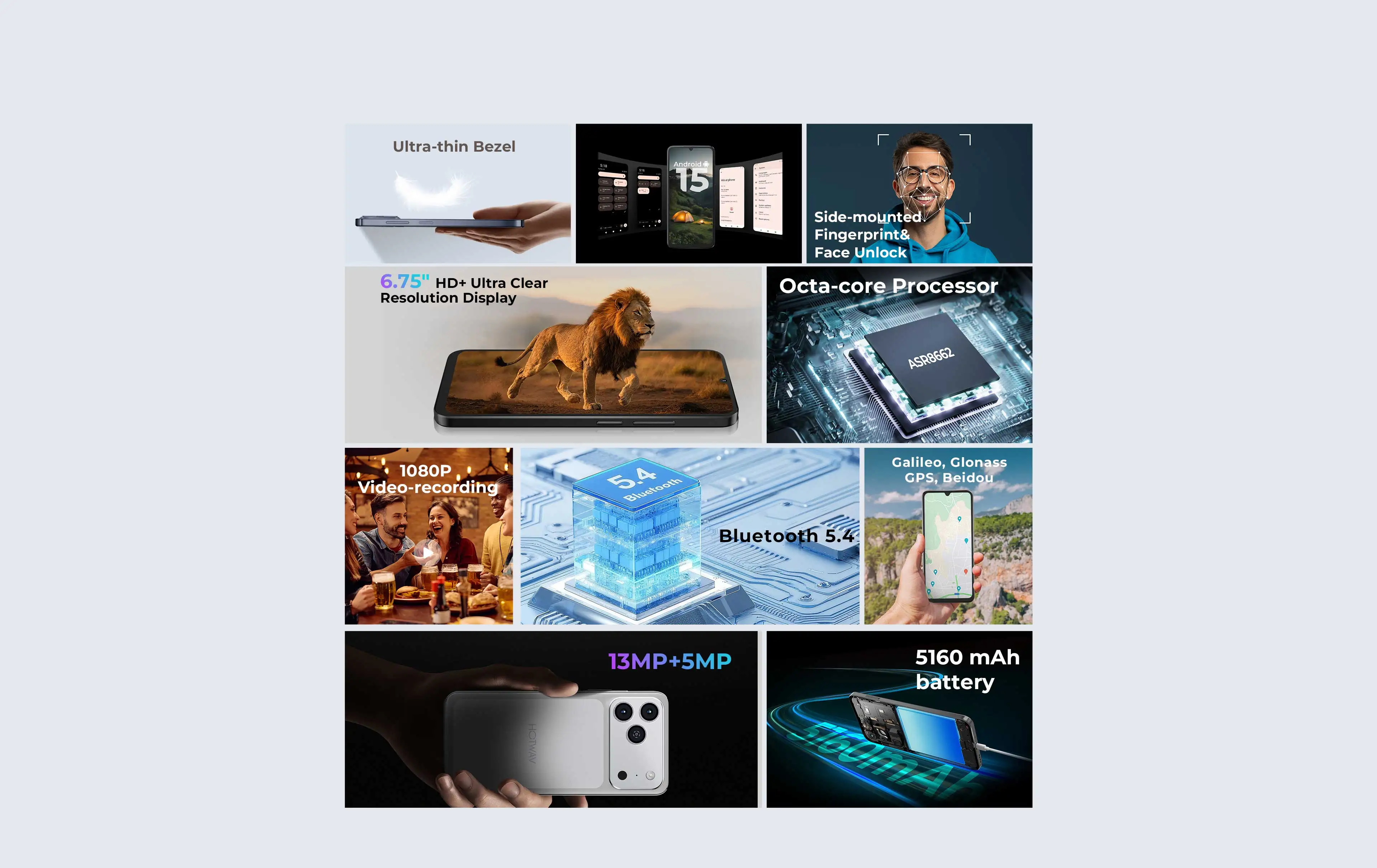 HOTWAV A17 Pro Max — це смартфон, який з першого погляду заявляє про свій статус, поєднуючи в собі сучасні тренди дизайну та високу ергономіку. Корпус пристрою виконаний з акцентом на витонченість: плоскі грані та мінімалістичні лінії надають йому вигляду дорогого флагмана, при цьому смартфон комфортно лежить у руці. Екран HOTWAV A17 Pro Max є справжнім вікном у світ яскравого контенту, пропонуючи користувачеві значну діагональ 6,75 дюйма. Головною особливістю дисплея стала підтримка частоти оновлення 120 Гц, що забезпечує неймовірну плавність при прокручуванні стрічок соцмереж, у динамічних іграх та під час навігації по меню. IPS-матриця з роздільною здатністю HD+ (1600х720 пікс.) гарантує реалістичну передачу кольорів та широкі кути огляду, що робить перегляд відео чи роботу з документами максимально комфортними. Завдяки високому рівню яскравості, текст та зображення залишаються розбірливими навіть при денному освітленні. Сучасний формат 20:9 та тонкі рамки навколо екрана дозволяють повністю зануритися в ігровий процес або кінематографічний досвід, створюючи ефект безмежного візуального простору. Серцем смартфона є актуальний восьмиядерний енергоефективний процесор, який забезпечує стабільну роботу системи в режимі багатозадачності. Завдяки розумному розподілу ресурсів між ядрами, смартфон легко заряджається користувачем, плавно запускає доповнення та дозволяє комфортно грати в популярні мобільні ігри. Особливої уваги заслуговує конфігурація пам'яті: пристрій оснащений 4 ГБ оперативної пам'яті, яку можна розширити за допомогою віртуальних ресурсів, що забезпечить безперебійну комунікацію між фоновими процесами. Для збереження ваших фотографій, відео та програм передбачено значний обсяг внутрішньої пам'яті – 128 ГБ або 256 ГБ (залежно від версії), а незабаром з'явиться й те, що смартфон підтримує карти пам'яті microSD ємністю до 1 ТБ. Таке поєднання «скакування» гарантує, що ви скоро забудете про попередження, поки не виникне дефіцит хорошого місця, і зможете насолоджуватися безперебійною роботою пристрою вже сьогодні. Оптична система пристрою спроектована так, щоб кожен ваш знімок виглядав чітким та насиченим, незалежно від умов освітлення. Основний модуль камери з високою роздільною здатністю та підтримкою алгоритмів штучного інтелекту дозволяє створювати деталізовані фотографії з природною передачею кольорів. Завдяки швидкому автофокусу та покращеним режимам нічної зйомки, ви зможете зафіксувати важливі моменти навіть у сутінках, мінімізуючи шуми та зберігаючи глибину кадру. Для любителів портретної фотографії передбачено програмне розмиття фону, яке художньо виділяє об'єкт зйомки. Фронтальна камера інтегрована у витончений виріз на екрані і ідеально підходить не лише для яскравих селфі, а й для кристально чистих відеодзвінків чи стрімів. Інтелектуальні функції б'ютифікації автоматично підкреслюють переваги зовнішності, роблячи ваші портрети готовими до публікації у соцмережах без додаткової обробки. HOTWAV A17 Pro Max розроблений для тих, хто веде активний спосіб життя і не хоче залежати від розетки. Смартфон оснащений потужним аккумулятором ємністю 5160 мАг, що в поєднанні з енергоефективним процесором та оптимізованою ОС Android 15 забезпечує вражаючі показники автономності. Одного заряду легко вистачає на цілий день інтенсивного 