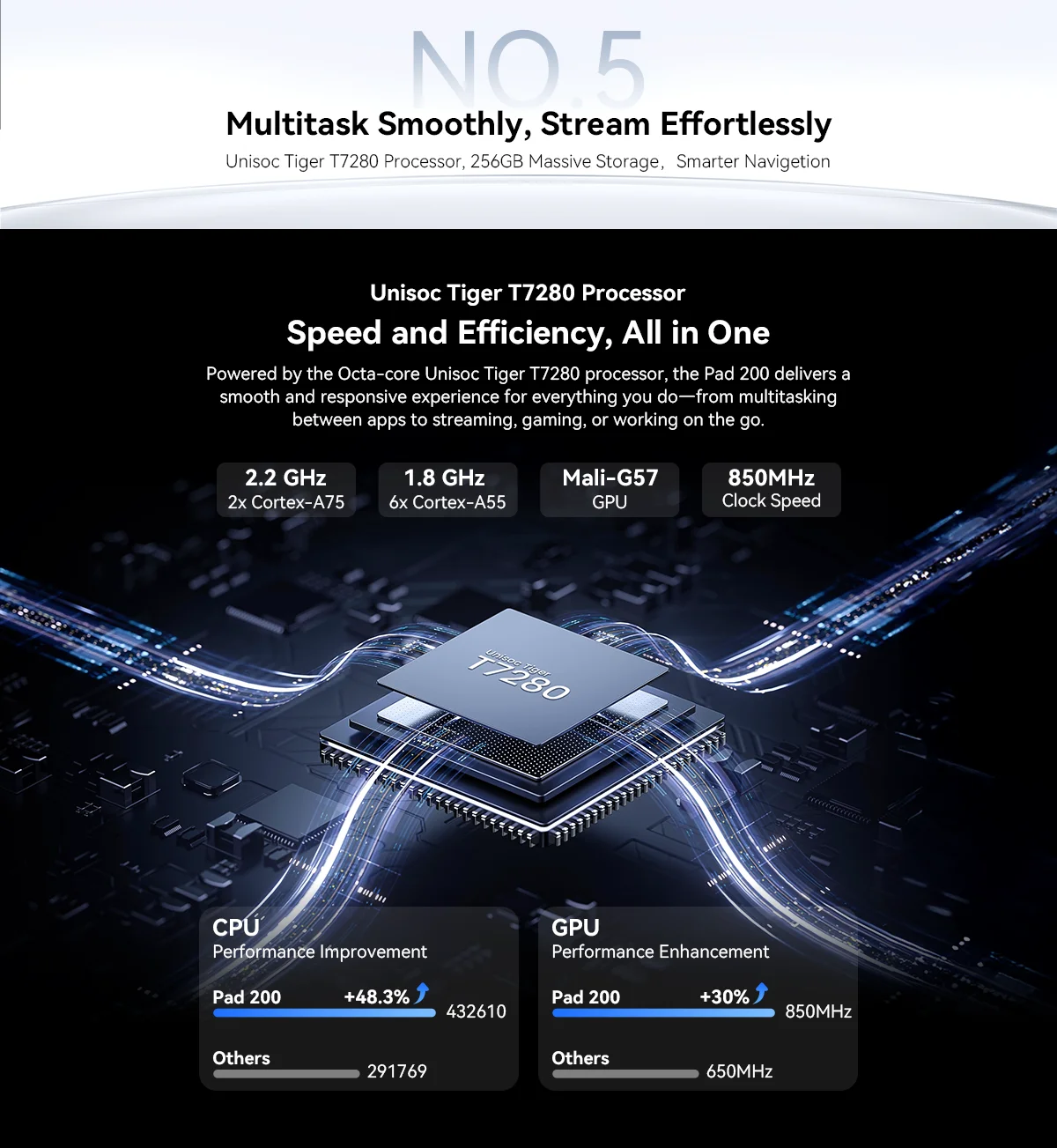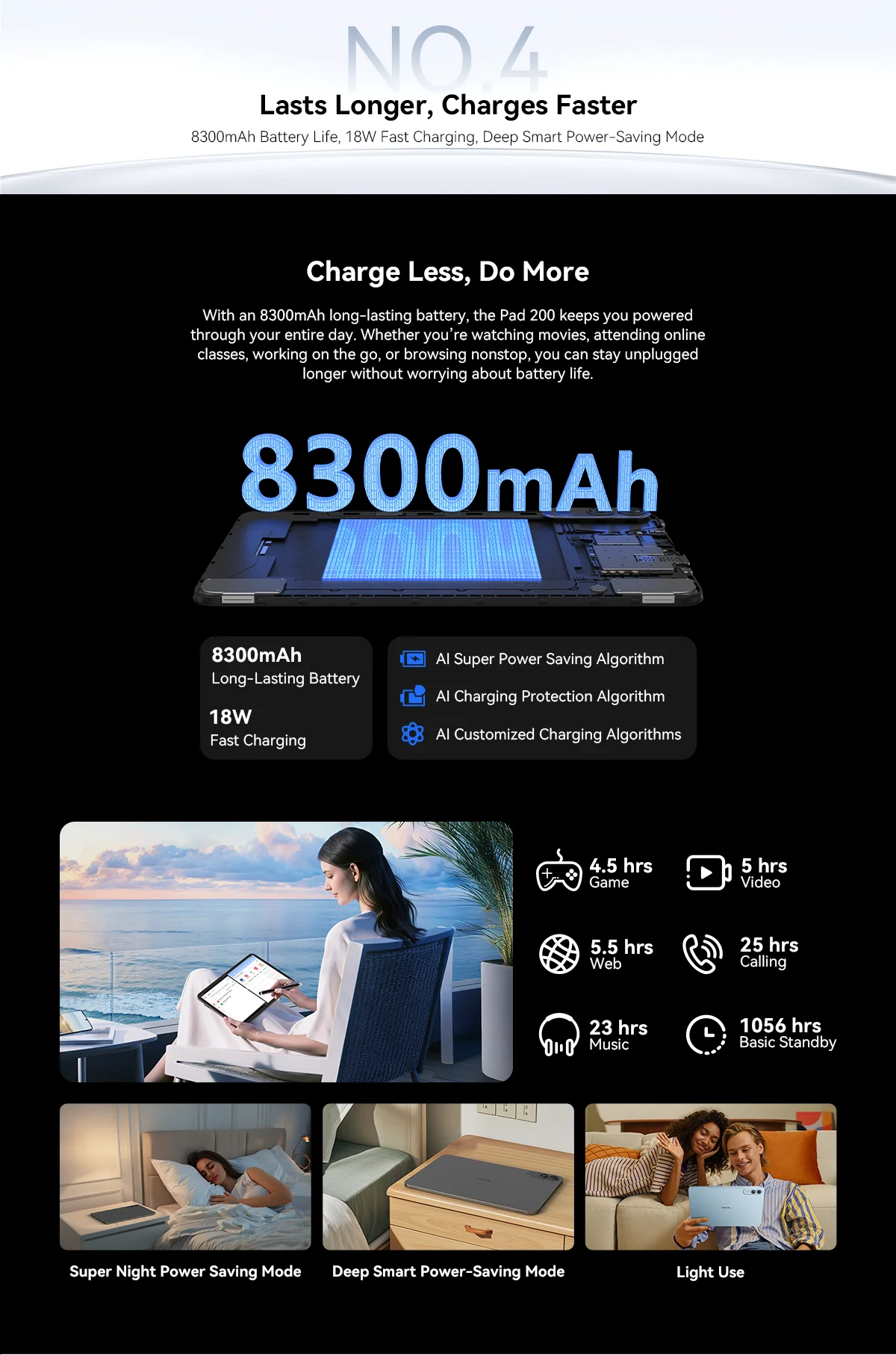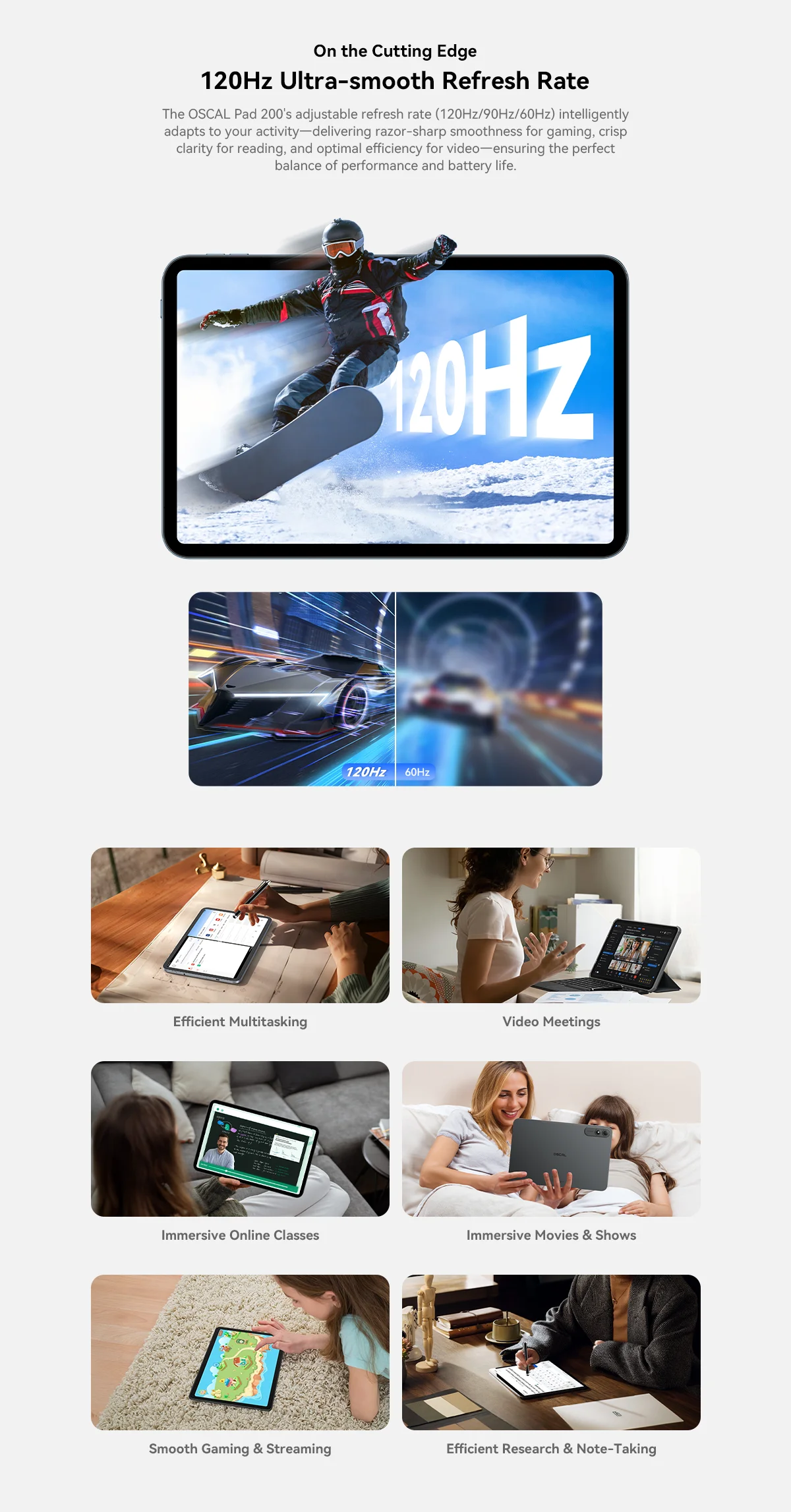 Blackview Oscal Pad 200 — це сучасний великоформатний планшет із акцентом на мультимедійність, багатозадачність і AI-можливості. Тонкий корпус товщиною лише 7,9 мм та вага близько 750 г роблять його зручним для щоденного використання вдома, в офісі чи в дорозі. Пристрій виглядає стримано й стильно у сірому або блакитному кольорі. Корпус має міцну конструкцію з якісних матеріалів, добре збалансований для тривалого утримання в руках. Планшет оснащений слотом Dual SIM, що дозволяє використовувати мобільний інтернет 4G без прив’язки до Wi-Fi — важлива перевага для поїздок і роботи поза домом. Планшет отримав великий 13,4-дюймовий IPS-екран із роздільною здатністю 1200х1920 пікселів та частотою оновлення 120 Гц. Завдяки цьому зображення виглядає плавним і чітким — ідеально для відео, ігор, браузингу та роботи з документами. Співвідношення екрана до корпусу — 90%, що створює ефект «великого полотна» для перегляду фільмів або роботи з таблицями та презентаціями. Частота опитування сенсора 240 Гц забезпечує швидку реакцію на дотик. Яскравість 350 ніт достатня для комфортного використання в приміщенні. Додаткові режими Night Light, Reading Mode та Dark Mode зменшують навантаження на очі, а AI-оптимізація контрасту допомагає під час тривалого навчання або читання. Oscal Pad 200 працює на 8-ядерному процесорі Unisoc T7280 (2×Cortex-A75 2.2 ГГц + 6×Cortex-A55 1.8 ГГц) з графікою Mali-G57 MP1. Це оптимальне рішення для щоденних завдань: навчання, офісні програми, відео, легкі ігри та мультимедіа. 6 ГБ оперативної пам’яті забезпечують плавну роботу системи та багатозадачність без затримок. Вбудоване сховище доступне у версіях 128 або 256 ГБ із можливістю розширення карткою TF до 2 ТБ — простору вистачить для фільмів, фото, навчальних матеріалів та програм. Планшет працює на Android 16 з оболонкою DokeOS 5.0, що пропонує PC Mode 3.0, Split Screen 2.0 та AI-функції, включаючи інтеграцію з Gemini AI для створення контенту, нотаток і креативних завдань. Основна камера 16 МП з автофокусом і LED-спалахом дозволяє робити чіткі фото документів, знімати відео у форматі 1080p та фіксувати важливі моменти. Це зручно для студентів, роботи з паперами чи створення контенту. Фронтальна камера 8 МП чудово підходить для відеодзвінків, онлайн-уроків, Zoom-конференцій і селфі. Підтримується AI-розпізнавання обличчя для швидкого розблокування. Інтеграція з Google Lens, ImageX та VidGen дозволяє редагувати фото, генерувати креативний контент і працювати з візуальними матеріалами без додаткового обладнання. Планшет оснащений подвійними BOX-динаміками Smart-K із AI-оптимізацією звучання. Вони забезпечують чистий, гучний і об’ємний звук для перегляду фільмів, прослуховування музики чи відеодзвінків. AI-шумозаглушення покращує якість голосу під час онлайн-спілкування навіть у шумному середовищі. Акумулятор ємністю 8300 мА·год забезпечує тривалий час роботи без підзарядки — до 23 годин прослуховування аудіо або до 5 годин активного відео. Функція AI Super Power Saving оптимізує споживання енергії для подовження автономності. Зарядка здійснюється через USB-C 2.0 з підтримкою OTG для підключення периферії. ОСНОВНЕ Операційна система — Android 16 Фірмова оболонка — Doke OS 5.0 КОРПУС Тип корпусу — Моноблок Матеріал корпусу — Пластик, Метал ЗВ'ЯЗОК Можливість здійснювати дзвінки — Є Стандарти та технології — 2G, 3G, 4G Кількість SIM-карт — 2 SIM Формат SIM-карти — Nano Тип слота SIM-карт — SIM + Гібридний (SIM або MicroSD) ЕКРАН Діагональ 