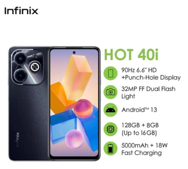 Опис Infinix HOT 40i (X6528B) 8/128GB NFC Starlit Black Гарантія 1 Рік