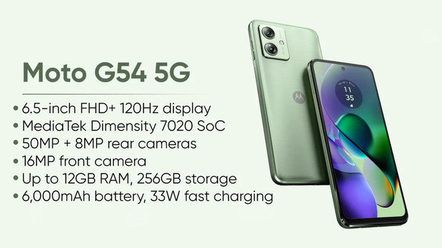 Основні характеристики Motorola Moto G54 5G 12/256Gb NFC Mint Green Гарантія 1 рік