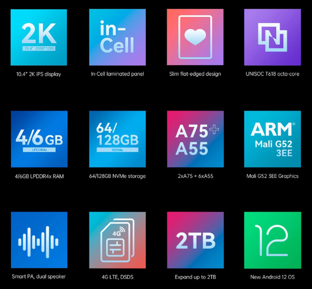 Компанія Alldocube розпочала продаж нового планшета Alldocube iPlay 50. iPlay 50 базується на чіпсеті Unisoc Tiger T618, оснащується 6 Гб оперативної пам'яті та 64 Гб вбудованої пам'яті, з можливістю розширити до 2 Тб за допомогою карт пам'яті формату MicroSD. Місткість акумулятора дорівнює 6000 мАг. Alldoucube iPlay 50 має 10,4-дюймовий IPS-екран з роздільною здатністю 2000x1200. Основна камера на 8 Мп, селфі-камера 5-мегапіскельна. Працює пристрій під керуванням операційної системи Android 12. Є два слоти для SIM-карток, порт USB-C і роз'єм для навушників. Подвійні динаміки Smart PA BOX Насолоджуйтесь приголомшливим звуком. В iPlay 50 використовується оптимізована конструкція динаміків Dual BOX, оснащена Smart PA, щоб поринути в ігри, слухати музику і дивитися фільми. Відповідно до характеристик у виробника вийшов топовий та ідеальний планшет у співвідношенні «ціна-якість» ХАРАКТЕРИСТИКИ: ОСНОВНЕ Інтерфейс підключення — USB Type-C, Audio Jack 3.5 Стандарти та технології — 3G, 4G Операційна система — Android 12 Кількість SIM-карт — 2 SIM Формат SIM-карти — Nano Тип корпусу — Моноблок Матеріал корпусу — Метал, Пластик ПРОЦЕСОР Процесор — Unisoc Tiger T618 Графічне ядро — Mali G52 MP2 Кількість ядер — 8 ядер Частота процесора — 2.0 ГГц ЕКРАН Діагональ екрану — 10.4 Роздільна здатність екрана — 2000x1200 пікс. Тип екрану — IPS Щільність пікселів — 224 PPI Кількість кольорів — 16 мільйонів ПАМ'ЯТЬ Внутрішня пам'ять — 6 Гб Оперативна пам'ять — 64 Гб Підтримка карт пам'яті — Є microSD — можливе розширення до 512 Гб КАМЕРА Задня камера — 8 Мп Фронтальна камера — 5 Мп Запис відео — FullHD ЗВУК Стереозвук — Є БЕЗПРОВІДНІ ТЕХНОЛОГІЇ Bluetooth — 5.0 GPS — A-GPS / GPS / Glonass / Galileo / Beidou Wi-F — 802.11 a/b/g/n/ac ДАТЧИКИ Датчик освітлення, Акселерометр АКУМУЛЯТОР Місткість акумулятора — 6000 мАг ГАБАРИТИ Розміри — 247 x 157 x 8 мм Вага — 475 г КОМПЛЕКТАЦІЯ Планшет, Блок живлення, кабель Type-C, інструкціяAlldocube iPlay 50