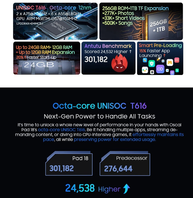 Опис Планшет Blackview Oscal Pad 18 8/256GB Global LTE Grey