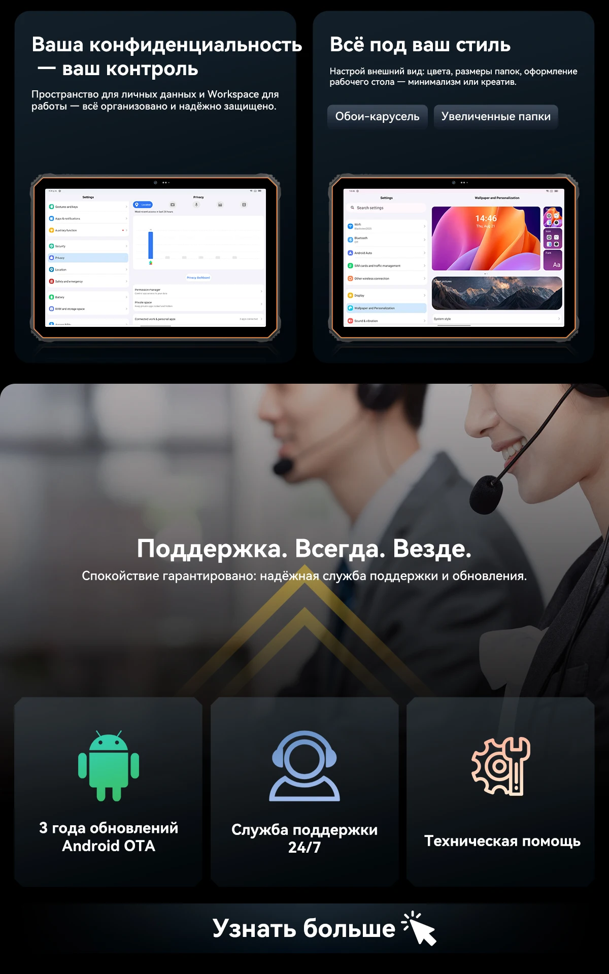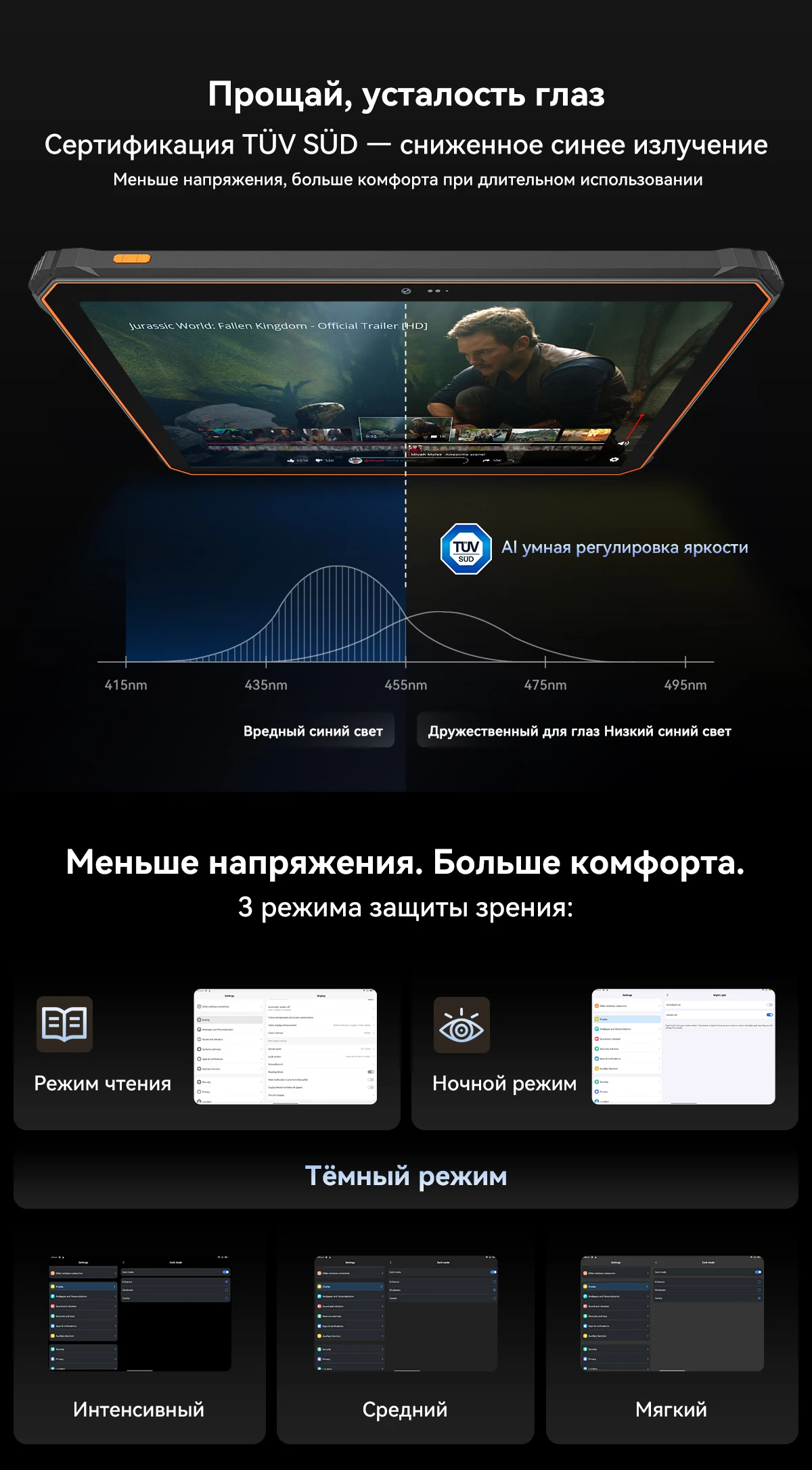 Яскравість: 400 нит Режим у рукавичках Частота дискретизации касания: 120 Гц Сертифікат TÜV SÜD Low Blue Light Widevine L1 Stylus support ПРОЦЕСОР