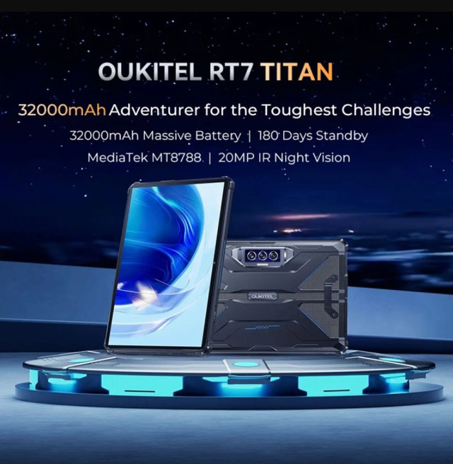 Oukitel RT7 Titan 4G - це результат відмінної роботи китайських інженерів. Рішення встановити акумулятор ємністю 32000 мАч було справді сміливим кроком! Саме така потужність дає цьому планшету здатність працювати автономно з ранку і до пізнього вечора, незалежно від ваших справ. І що дивно, виробник легко помістив всі ці приголомшливі характеристики в настільки міцний корпус, який тонкий всього 19.8 мм! Установка процесора MediaTek MT8788V дозволяє даній моделі вільно працювати в мережі 4G. Операційна система Android 13, встановлена на планшеті, забезпечує високий рівень безпеки та безліч додаткових функцій. У планшета як процесор використовується восьмиядерний чіпсет MediaTek MT8788V. Він включає 8 ядер, з яких 4 Cortex-A73 працюють на частоті 2.0 ГГц, а 4 Cortex-A53 також працюють на частоті 2.0 ГГц. Графічне ядро цього пристрою – Mali-G72 MP. Ці технічні характеристики надають пристрою достатньої обчислювальної потужності для забезпечення плавної роботи і виконання різних завдань. Крім того, 8 ГБ оперативної пам'яті (ОЗУ) та 8 ГБ віртуальної пам'яті, забезпечує хороші можливості для багатозадачності та обробки різних додатків. Це дозволяє пристрою більш ефективно керувати запущеними програмами, забезпечуючи плавну та чуйну роботу. Великий обсяг оперативної пам'яті також позитивно впливає на продуктивність при іграх та інших ресурсомістких завданнях. Протиударний планшет Oukitel RT7 Titan 4G чудово справляється з екстремальними умовами експлуатації. Він захищений від багатьох ситуацій, які можуть виникнути на виробництві або при роботі в нестандартних погодних умовах. Цей планшет може витримати падіння з висоти близько 1 метра на тверді поверхні та навіть занурення у воду на таку саму глибину. Міцний гумовий корпус, краї, що виступають навколо екрану і загартоване скло забезпечують надійний захист від пошкоджень. Захист екрану забезпечується загартованим склом Dragon Trail Glass завтовшки 1.1 мм. Екран планшета має діагональ 10.1" і пропонує яскравий, великий і практичний дисплей. Він відмінно підходить для різних завдань, будь то робота або активний відпочинок. Вбудована 48 МП камера займає одне з лідируючих місць серед конкурентів. "Oukitel" зробили великий прогрес порівняно з попередніми моделями, додавши 20 МП камеру для нічної зйомки – це один із перших захищених планшетів з такою фішкою. Акумулятор ємністю 32000 мАг, встановлений у планшеті Oukitel RT7 Titan 4G, справді вражаючий. Цей потужний акумулятор забезпечує неймовірну автономність пристрою, що дозволяє йому працювати в режимі очікування до 180 днів і забезпечуючи тривалий час роботи в різних сценаріях використання, таких як навігація, дзвінки, прослуховування музики та перегляд відео. Функція реверсивної зарядки дозволяє планшету також виступати в ролі зовнішнього акумулятора (павербанка), що робить його ще кориснішим для користувачів. З такою потужністю акумулятора Oukitel RT7 Titan 4G є відмінним вибором для тих, хто потребує тривалого часу роботи без підзарядки та додаткової можливості заряджання інших пристроїв. Планшет Oukitel RT7 Titan 4G задовольнить різні потреби. Це найвитриваліший планшет серед конкурентів, один із найшвидших, з надійним захистом та стильним дизайном. А ще він має чудовий звук завдяки використанню 4 стереодинаміків! Всі ці характеристики зроблять цей планшет ідеальним вибором для тих, хто шукає надійний та багатофункціона