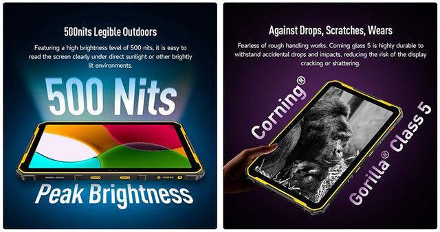 Захищений планшет Ulefone Armor Pad 2 11'' 8/256 GB NFC IP69K 4G багато в чому повторює свого конкурента від Blackview, але суть зовсім не в цьому. Це один з перших захищених планшетів компанії з характеристиками середнього рівня. Це означає, що володіючи досить потужним залізом і багатьма додатковими фішками цей планшет ще й захищений від ударів і води за стандартом IP69K. Дизайн досить вдалий, як і розташування елементів на корпусі, адже тут є 2 динаміка, а ще роз'єм для навушників 3.5 мм! На задній панелі планшета розмістили великий світлодіодний ліхтарик з потоком світла рівним 750 Люмен. Це означає, що використовувати планшет для кемпінгу або інших ситуацій більш ніж зручно - світла вистачить, і не тільки для використання в наметі. Так само Ulefone Armor Pad 2 оснащений модулем NFC, який може використовуватися як для оплати без наявності банківської карти під рукою, так і для більш серйозних організаційних завдань на підприємстві. Встановили в планшет Ulefone Armor Pad 2 досить значний дисплей, дозвіл якого 1200х2000 пікселів при діагоналі в 11 Дм. Одним з основних переваг крім захищеності від ударів є наявність яскравого підсвічування на рівні 500 нітт. Це дозволяє використовувати планшет повноцінно на вулиці для роботи і не тільки, адже видно на дисплеї буде все чітко. Насиченість кольору так само на висоті, немає проблем з переглядом відео або іншими завданнями. Скло Gorilla Glass 5 - те, що потрібно для ефективного захисту від ударів. Процесор Helio G99 давним-давно зарекомендував себе з відмінної сторони, і саме він встановлений в планшеті Ulefone Armor Pad 2. У парі з ним і 8 ГБ оперативної пам'яті, а для накопичення файлів є 256 ГБ вбудованої пам'яті. Цього предостатньо більшості користувачів, але ще ж і можливість установки карти пам'яті є, при чому в окремий слот - 2 слота для сім-карт так само доступні. А ось акумулятор тут по-справжньому ємний - 18600 маг, при цьому товщина корпусу всього 14 мм - дивно! Ulefone Armor Pad 2 - потужний, автономний планшет з NFC, захистом корпусу і багатьма перевагами, які точно змусять звернути на себе увагу. До планшета так само можна підключати сторонні модулі: ендоскоп, мікроскоп - все це можливо за допомогою спеціального фірмового коннектора на торці корпусу. Враховуючи ще й 48-Мп камеру ця модель точно підійде сучасним користувачам, які шукають надійність і сучасні параметри в одному корпусі, та ще й за адекватні гроші! ОСНОВНЕ Операційна система — Android 13 Інтерфейс користувача — Doke OS 3.0 КОРПУС Тип корпусу — Моноблок Матеріал корпусу — Полікарбонат, пластик Захищеність — Пило-вологозахист: IP68; IP69K, ударозахист: MIL-STD-810; MIL-STD-810H ЗВ'ЯЗОК Можливість здійснювати дзвінки — Є Стандарти та технології — 2G, 3G, 4G Кількість SIM-карт — 2 SIM Формат SIM-карти — Nano Тип слота SIM-карт — SIM + SIM + MicroSD ЕКРАН Діагональ екрану — 11.0" Роздільна здатність екрана — 2000х1200 пікс. Full HD+ Тип екрану — IPS Щільність пікселів — 212 ppi Частота оновлення — 60 Гц Захисне скло — Corning Gorilla Glass 5 ПРОЦЕСОР Процесор — MediaTek Helio G99 Кількість ядер — 8 ядер Частота процесора — 2x 2.2 ГГц, ARM Cortex-A76, 6x 2.0 ГГц, ARM Cortex-A55 Графічне ядро — ARM Mali-G57 MC2 ПАМ'ЯТЬ Внутрішня пам'ять — 256 ГБ Оперативна пам'ять — 8 ГБ (+ до 8 ГБ віртуальної пам'яті) Підтримка карт пам'яті — Є, MicroSD до 1 ТБ КАМЕРА Основна камера — 48 МП Фронтальна камера — 16 МП ДОДАТКОВО ЗВУК Стереозвук — Є БЕЗДРОТОВІ ТЕХНОЛОГІЇ Bluetooth — 5.2 FM-радіо — Є NFC — Є VoLTE — Є GPS — A-GPS, GPS, Glonass, Galileo, Beidou Wi-F — 6 (802.11ax) ІНТЕРФЕ
