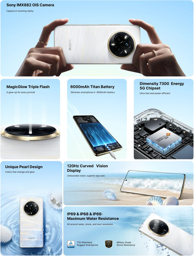 Основні характеристики REALME 14 PRO 5G 12/512GB NFC Pearl White (Global Version) Гарантія 1 Рік