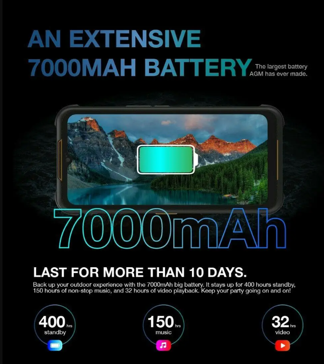 КОРПУС Корпус смартфона отлично прорезинен, при чем на ощупь этот материал отличается реально от большинства конкурентов, и в лучшую сторону. Толщина корпуса - 23 мм, вес - 360 гр. Эти параметры не самые "компактные", ведь и сам смартфон при этом не из простых. На задней части устройства размещён огромный динамик, вокруг которого есть LED RGB подсветка. Да, учитывая мощность динамика - это полноценная "карманная дискотека", что не даёт ни один другой производитель. Сзади так же есть и сканер отпечатков пальцев, и коннекторы для подключения док станции для зарядки - современно и технологично, не иначе. ЖЕЛЕЗО Операционная система в смартфоне - Android 12, она работает очень хорошо, обеспечивая Вам комфорт в каждом рабочем моменте. Процессор используется Helio G35, он обладает поддержкой 4G, он имеет 8 ядер и максимальную тактовую частоту в 2.3 ГГц. Смартфон так же имеет несколько вариантов памяти, в конкретно данной модели 4 Гб оперативной и 64 Гб постоянной памяти. Аккумулятор ёмкостью 7000 мАч даёт возможность около 2 суток не подзаряжать смартфон, и это чувствуется в работе с положительной стороны. NFC модуль присутствует, а вот беспроводная зарядка не предусмотрена, так как это всё же не флагманская модель. В остальном - смартфон интересен и в работе будет радовать, так как и защищенность здесь на достойном уровне. ДИСПЛЕЙ Используется в смартфоне отличная IPS матрица, диагональ которой 6.517 Дм. Что тут сказать - это среднестатистический дисплей, к которому особых претензий то и нет. Здесь средний уровень яркости подсветки, отличная плотность картинки благодаря разрешению 1600х720 пикселей. Можно заниматься всем, чему угодно, и такой дисплей будет только помогать. Главный козырь - защищенность от ударов, ведь AGM особо щепетильно подходит к вопросу защиты своих гаджетов, они в этом первые. КАМЕРА Как же снимает 48-Мп камера смартфона AGM H5? Единственный момент, которого может кому-то не хватать - разрешение видео только FullHD, но во всем остальном здесь все прекрасно. Как фото, так и видео режим работает корректно, так как AGM насчет этого очень педантичны. Фронтальный модуль с разрешением 20 Мп однозначно делает одни из лучших фото на уровне, здесь вопросов нет. Одним словом - смартфон может конкурировать со многими флагманами в плане камер, и это его большой плюс. ХАРАКТЕРИСТИКИ: Тип устройства — Смартфон О. С. Операционная система — Android 12 КОРПУС Тип корпуса — Моноблок СТЕПЕНЬ ЗАЩИТЫ Класс защиты — IP68/IP69k/MIL-STD-810H Водонепроницаемость — от 2 м до 60 минут Падение на бетон — 2 м под любым углом Температура — от -20°C до +50°C СВЯЗЬ Стандарты связи — 2G, 3G, 4G Кол-во Sim карт — 2 слота Формат SIM-карт — Nano SIM Тип слота — SIM + Гибридный (SIM или MicroSD) ДИСПЛЕЙ Диагональ — 6.517 " Разрешение экрана — 720х1600 Плотность пикселей — 269 PPI Количество цветов — 16 млн. Тип дисплея — Защита экрана закаленным стеклом ПРОЦЕССОР Процессор — MediaTek Helio G35 MT6765 (8 ядер) Частота процессора — 2,3 ГГц (4x 2.3 GHz ARM Cortex-A53 x 4x 1.8 GHz ARM Cortex-A53) Графический процессор — PoverVR GE8320 ПАМЯТЬ Оперативная память — 6 Гб Встроенная память — 128 Гб Поддержка карт памяти — до 512 Гб КАМЕРА Основная камера — 48 Мп + 2 Мп со светодиодной вспышкой и Модулем ночной камеры Фронтальная камера — 20 Мп Sony IMX376 ДОПОЛНИТЕЛЬНО Разъем для наушников — 3,5 мм Встроенный фонарик — Есть Медиаплеер — Есть Диктофон — Есть ДАТЧИКИ Акселерометр — Есть Датчик приближения — Ест