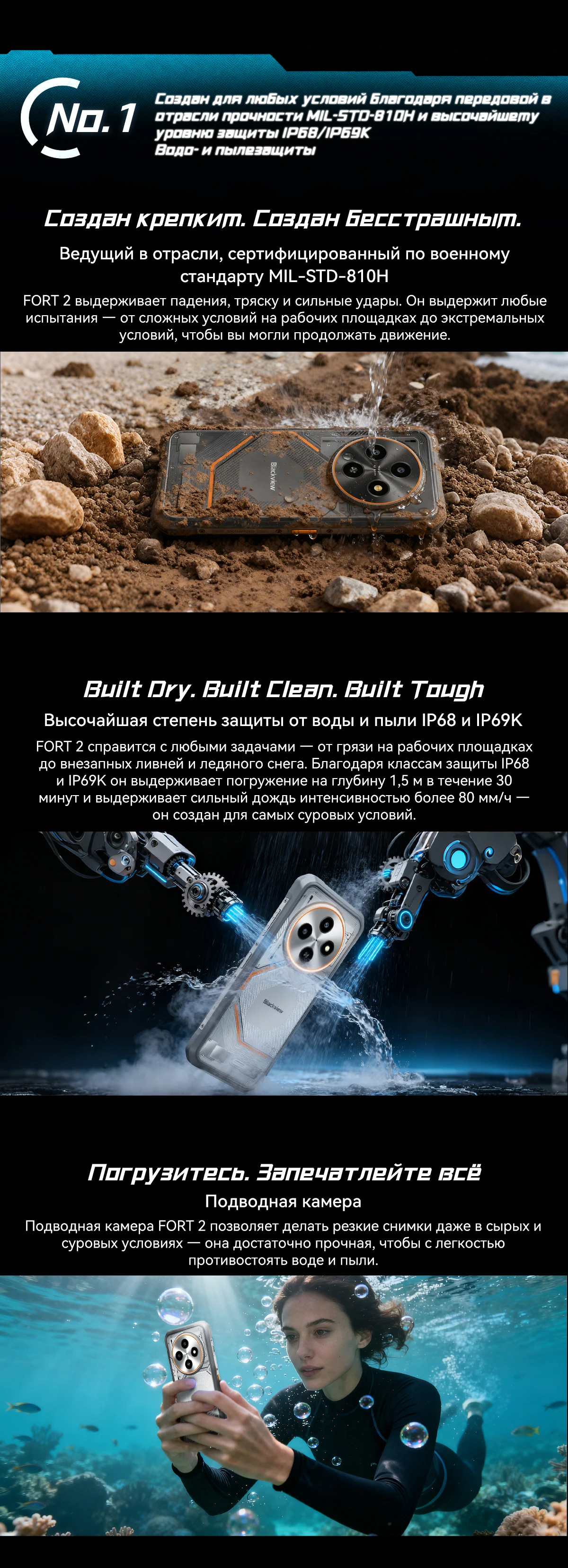 Описание Blackview FORT 2 8/256GB Obsidian Black Гарантия 1 Год