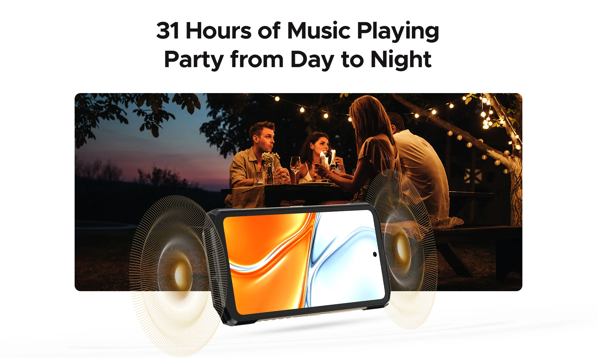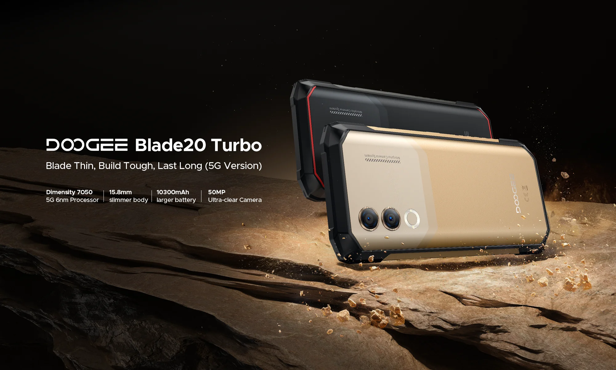 Doogee Blade 20 Turbo — це захищений смартфон, створений для тих, хто потребує максимальної надійності. Його корпус відповідає найвищим стандартам захисту IP68, IP69K та MIL-STD-810H, що гарантує стійкість до пилу, води, ударів і екстремальних температур. Завдяки цьому пристрій без проблем витримує падіння, занурення у воду та роботу в складних умовах — на будівництві, у поході чи під дощем. Головна місія Blade 20 Turbo — залишатися на зв’язку там, де інші смартфони вже не справляються. Смартфон оснащений 6,6-дюймовим IPS-дисплеєм з роздільною здатністю 720×1612 пікселів та частотою оновлення 90 Гц, що забезпечує плавну роботу інтерфейсу та комфорт під час перегляду контенту. Незважаючи на скромні характеристики на папері, екран приємно дивує якісною передачею кольорів та широкими углами огляду – цього цілком достатньо для роботи, перегляду відео та ігрів. Дисплей прикритий міцним склом Corning Gorilla Glass, яке забезпечує додатковий захист від царапин та випадкових ударів. Пристрій працює під керуванням Android 15, що гарантує стабільність, сучасний інтерфейс та сумісність з усіма актуальними програмами. За продуктивність відповідає восьмиядерний процесор MediaTek Dimensity 7050, що забезпечує високу швидкість роботи та дозволяє комфортно запускати навіть вимогливі ігри. Смартфон оснащений 8 ГБ оперативної пам'яті та 256 ГБ вбудованого сховища, чого достатньо для щоденного використання. Основна камера на 50 МП, забезпечує чіткі та деталізовані знімки, а також запис відео у форматі Full HD. Завдяки гарному фокусуванню та мінімальному рівню цифрових шумів камера демонструє впевнену якість навіть у складних умовах освітлення. Фронтальна камера на 16 МП підходить для відеозв'язку та селфі — за достатнього освітлення фото виглядають природно, а відео не поступається за якістю навіть дорожчим моделям. Такий набір камер робить смартфон универсальним рішенням для щоденного використання та зйомки контенту. Акумулятор ємністю 10300 мАг гарантує до двох діб активної роботи без заряджання. Пристрій підтримує NFC, має точну навігацію (GPS, ГЛОНАСС, Galileo) і загалом демонструє рівень швидкодії, близький до флагманів. ОПЕРАЦІЙНА СИСТЕМА Операційна система — Android 15.0 (DokeOS 4.1) КОРПУС Стандарт захисту — IP68 / IP69K / MIL-STD-810 Захист корпусу — Водозахист, Вологозахист, Пилозахищений, Ударостійкий Матеріал корпусу — Метал, Авіаційний алюміній, Пластик, Полікарбонат, Гума підвищеної міцності та зносостійкості, Скло ЗВ'ЯЗОК Кількість SIM-карт — 2 SIM Формат SIM-карти — Nano-SIM Тип слота SIM-карти — SIM + SIM + MicroSD Стандарти зв'язку — GSM, 3G, 4G (LTE), 5G ЕКРАН Діагональ екрану — 6.6" Тип екрану — IPS Роздільна здатність екрана — 1612х720 пікс Частота оновлення екрану — 90 Гц Щільність пікселів — 267 ppi ПРОЦЕСОР Процесор — MediaTek Dimensity 7050 Кількість ядер — 8 Частота процесора — 2x 2.6 ГГц Cortex-A78 + 6x 2.0 ГГц Cortex-A55 Графічний процесор — ARM Mali-G68 MC4 ПАМ'ЯТЬ Внутрішня пам'ять — 256 ГБ Оперативна пам'ять — 8 ГБ (+ 24 ГБ віртуальної пам'яті) Слот для картки пам'яті — Є, microSD 2 ТБ КАМЕРА Камера — 50 МП + 2 МП Фронтальна камера — 16 МП БЕЗДРОТОВІ ТЕХНОЛОГІЇ Wi-Fi — 6 (802.11ax) Технологія GPS — A-GPS, GPS Супутникова система — GPS, ГЛОНАСС, Galileo, Beidou Bluetooth — 5.2 VoLTE — Є NFC — Є Інфрачервоний порт — Немає ІНТЕРФЕЙСИ Аудіо вихід (3.5 мм) — Немає Роз'єм для синхронізації — USB Type-C 2.0 ЗАХИЩЕННІСТЬ IP (ступінь захисту від проникнення) — IP68 / IP69K / Військовий сертифікат MIL-STD-810 Захист від пилу — Пил не може по