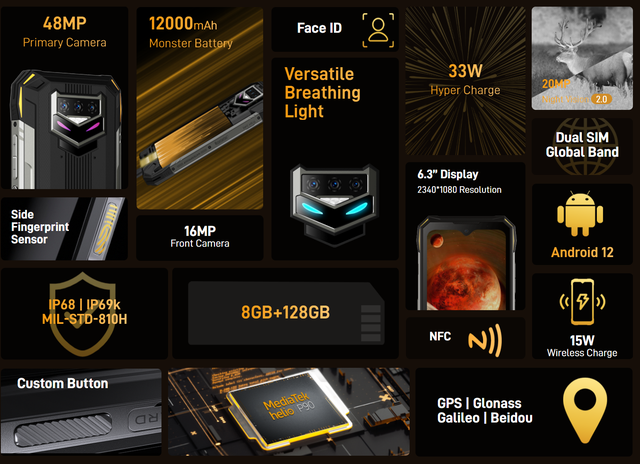 Основные характеристики DOOGEE S89 8/128 GB Night Vision Orange Гарантія 1 рік