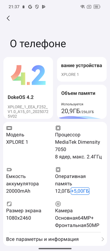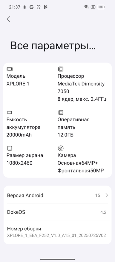 Полностью обсмотрев и общупав телефон, можно посмотреть и внутри. Ну точнее на то ПО, которое установлено в смартфоне. Blackview Xplore 1 работает на свежем Android 15, с незначительными надстройками, которые производитель назвал DokeOS. В целом это практически обычный голый Android, а вся надстройка заключается в добавлении в меню пунктов работы с дополнительными кнопками, с вторым экраном и некоторого софта специфичного и исключительно для защищённых смартфонов. Ниже разные скриншоты из меню и настроек, чтобы показать как тут и что устроено.