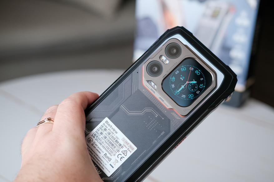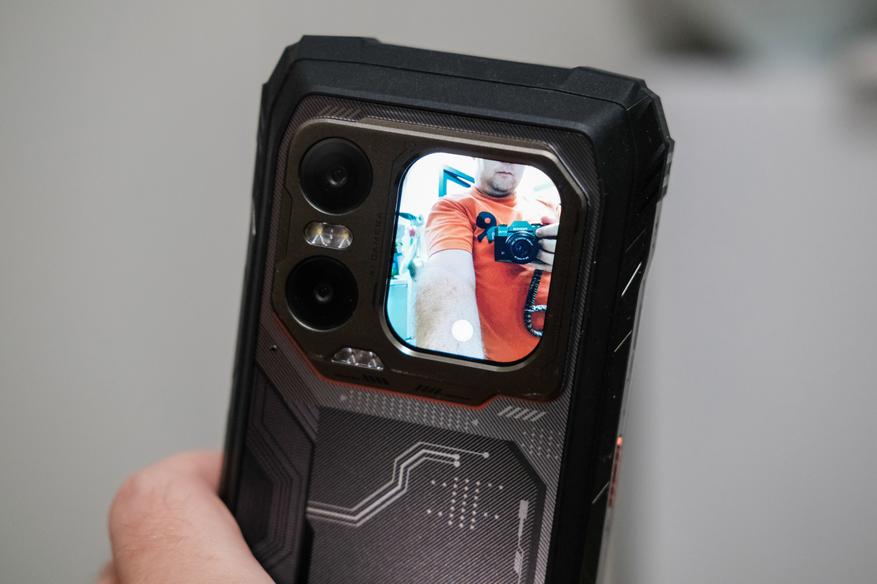 Даже по фотографиям понятно что смартфон весьма крупный. Вес 600гр и батарея на 20 000 мАч пока еще подразумевают форму и размеры кирпича. Но судя по тому, как бодро сейчас клепают подобные смартфоны, спрос на них действительно есть. Я сперва думал что подобные девайсы нужны только рыбакам и грибникам. Но потом понял что сейчас на подобные устройства также есть большой спрос, начиная с 22 года. Сами понимаете где. Потому что смартфон который спокойно держит заряд неделю, это весьма полезный смартфон. А я например использую этот смартфон ещё и как роутер, и это прям мастхэв: автономный, с поддержкой 5G, долго держит заряд, в случае чего становится основным смартфоном. Одни плюсы. Да цена хорошая. Но я отвлёкся, мы ведь внешний вид осматриваем.
