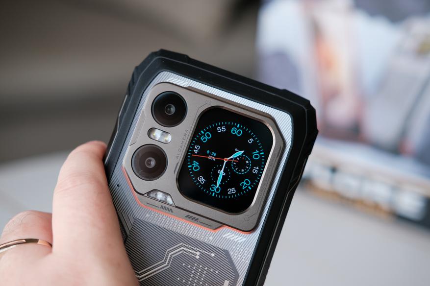 Второй экран служит по сути как некий индикатор. Но функционал у него весьма ограничен. По сути, чем-то мне напоминает функционал смарт-браслетов. В основное время экран работает как часы, и можно посмотреть время, ну и уведомления. Выглядит это примерно вот так