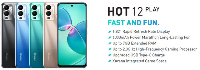 Основные характеристики Infinix Hot 12 Play NFC 4/64GB Gold Гарантия 1 Год