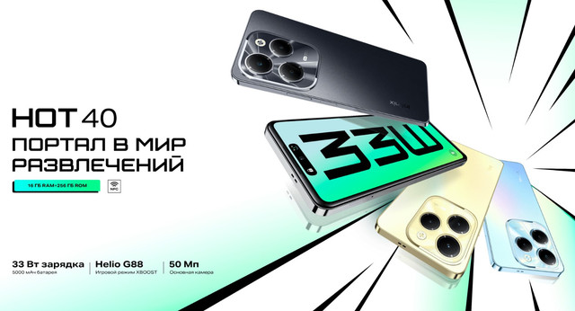 Тонкий и стильный смартфон с широкими возможностями фото- и видеосъемки. Имеет большой экран, плавно работающий даже при динамических сценариях использования. Встроенный игровой двигатель поможет вывести виртуальные сражения на новый уровень. Вместительная батарея позволит не думать о зарядке целый день. Продуманная программная оболочка и функциональная смарт-панель сделают работу с гаджетом более комфортным. При толщине чуть более 8 мм смартфон Infinix HOT 40 весит 196 г и удобно лежит в ладони. Градиентная окраска задней крышки хорошо переливается в зависимости от угла обзора. Благодаря люминесцентному покрытию корпус подсвечивается в темноте, что придает устройству премиальный вид и делает его узнаваемым. IPS-дисплей диагональю 6.78 дюймов имеет разрешение 2460×1080 пикселей и способен передавать более 16 млн оттенков. Цвета на экране выглядят естественно, а картинка контрастной и детализированной даже при увеличении масштаба. Частота обновления экрана 90 Гц делает скроллинг страниц плавным, изображение четким даже в динамических сценах игр и фильмов. При пиковой яркости 480 нит картинка на дисплее отчетливо видна на улице в солнечный день. За быстродействие смартфона Infinix HOT 40 отвечает восьмиядерный энергоэффективный процессор MediaTek Helio G88, дополненный 8 ГБ оперативной памяти. Количество RAM можно расширить до 16 ГБ с помощью виртуальных настроек. В последнем случае можно одновременно запустить до 18 приложений и не ощущать зависаний. Повысить производительность в играх позволит специальный режим XBOOST, оптимизирующий игровой процесс в зависимости от жанра. Один свайп на экране вызывает тактическую панель, которая поможет адаптировать настройки под запущенный процесс. Для хранения данных – коллекции фото, видео, музыки и фильмов – предназначено 256 ГБ постоянной памяти. Если их окажется недостаточно, есть слот для карты microSD. На тыльной стороне смартфона установлен блок камер с разрешением основным 50 Мп, есть портретный и макромодуль. Сочетание усилено продвинутыми алгоритмами искусственного интеллекта и яркой вспышкой с четырьмя LED-диодами. Даже при недостаточном освещении фото получаются яркими и четкими, а видео – динамическими, с высокой детализацией. Специальные режимы съемки расширяют возможности использования устройства. Фронтальная камера с разрешением 32 Мп имеет углом обзора 90 градусов, чтобы в кадр вошла даже большая компания друзей. Дополнительные функции позволят размыть задний фон или отретушировать пользовательское лицо для создания крутых портретов. За автономность Infinix HOT 40 отвечает аккумулятор емкостью 5 000 мАч, что поддерживает возможность быстрой зарядки от комплектного блока питания 33 Вт. Его ресурса хватит до 34 дней в режиме ожидания или до 45 часов. При этом от 20 до 75% гаджет заряжается чуть больше чем за полчаса. Даже если процент заряда всего 5%, пользователь сможет активировать опцию "Ультра", которая обеспечит до 2 часов в режиме разговора. За стереозвучание контента отвечает разработка Digital Theater System. Слушать музыку можно как в проводных наушниках - разъемом 3.5 мм предусмотрен, так и беспроводным, подключив их по Bluetooth. Есть также модули Wi-Fi и NFC, дополненные технологией усиления сигнала. О безопасности данных позаботится сканер отпечатков пальцев. Он встроен в кнопку включения, работает быстро и четко. Фирм