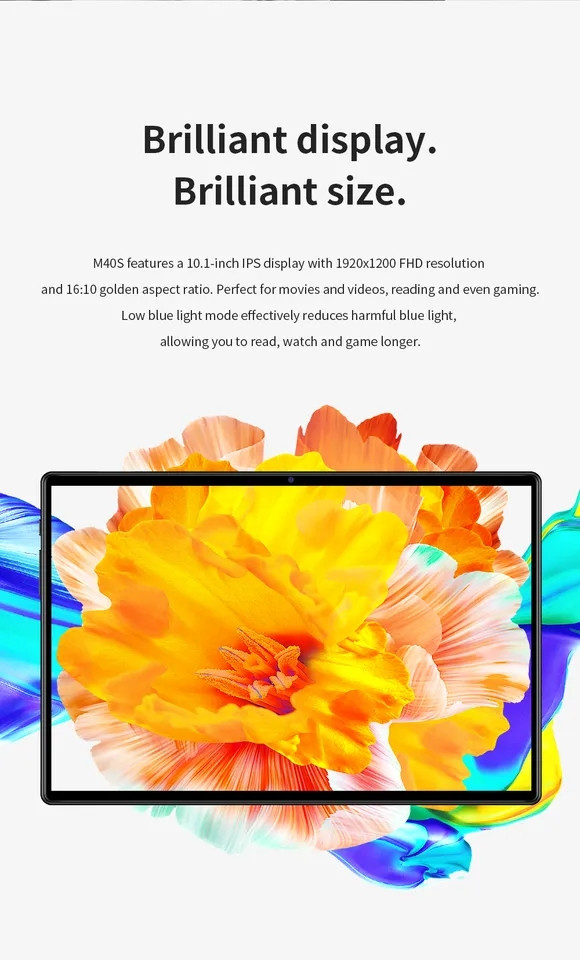 Цільнометалевий корпус - M40S виконаний з міцного суцільнометалевого корпусу, гладкого на дотик і стильного. Планшет Teclast M40S (4/128) LTE з Клавіатурою KS10 (TL-102782) Екран 10.1" IPS (1920x1200) / Tiger T610 (OctaCore) / RAM 4 ГБ / 128 ГБ вбудованої пам'яті + microSD / 4G / LTE / 2-SIM / Wi-Fi 5Ггц / Bluetooth 5 / WEB-Камери 2 Мп / 5 GPS / Android 11 / 480 г / Темно сірий металік. Система Android 11 - M40S оснащений системою Android 11 для найкращого контролю дозволів для додатків та кращого захисту та конфіденційності даних. 8-ядерний процесор Tiger T610 - M40S оснащений восьмиядерним процесором Unisoc T610, що забезпечує збалансовану потужність і ефективність. Система стереодинаміків M40S оснащений стереодинаміками Pure Sound це незалежний чіп підсилювача потужності звуку забезпечує насичений звук. ХАРАКТЕРИСТИКИ: ОСНОВНЕ Інтерфейс підключення — Type-C, 3.5 Jack Операційна система — Android 11 SIM — Без SIM-картки Тип корпусу — Моноблок Матеріал корпусу — Метал, Пластик ПРОЦЕСОР Процесор — UNISOC T610 Графічне ядро — Mali-G52 Кількість ядер — 8 ядер Частота процесора — 2x 2.0 ГГц ARM Cortex-A75 + 6x 2.0 ГГц ARM Cortex-A55 ЕКРАН Діагональ екрану — 10.1 Роздільна здатність екрана — 1920x1200 пікс. Тип екрану — IPS Щільність пікселів — 224 PPI Кількість кольорів — 16 мільйонів ПАМ'ЯТЬ Внутрішня пам'ять — 128 Гб Оперативна пам'ять — 4 Гб Підтримка карт пам'яті — Є microSD можливе розширення — до 256 Гб КАМЕРА Задня камера — 5 Мп Фронтальна камера — 2 Мп Запис відео — FullHD БЕЗДРОТОВІ ТЕХНОЛОГІЇ Bluetooth — 5.0 GPS — A-GPS / GPS / Glonass / Galileo / Beidou Wi-F — 802.11 a/b/g/n/ac ЗВУК Аудіочип — Інтегрований Вбудовані динаміки — Є Мікрофон — є Роз'єм для навушників — Є ДАТЧИКИ Акселерометр, Датчик наближення, Датчик світла, Магнітометр АКУМУЛЯТОР Місткість акумулятора — 6000 мАг ГАБАРИТИ Розміри — 240 х 160 х 7.8 мм Вага — 543 г КОМПЛЕКТАЦІЯ Планшет, USB кабель, Зарядний пристрій, Інструкція Teclast M40S