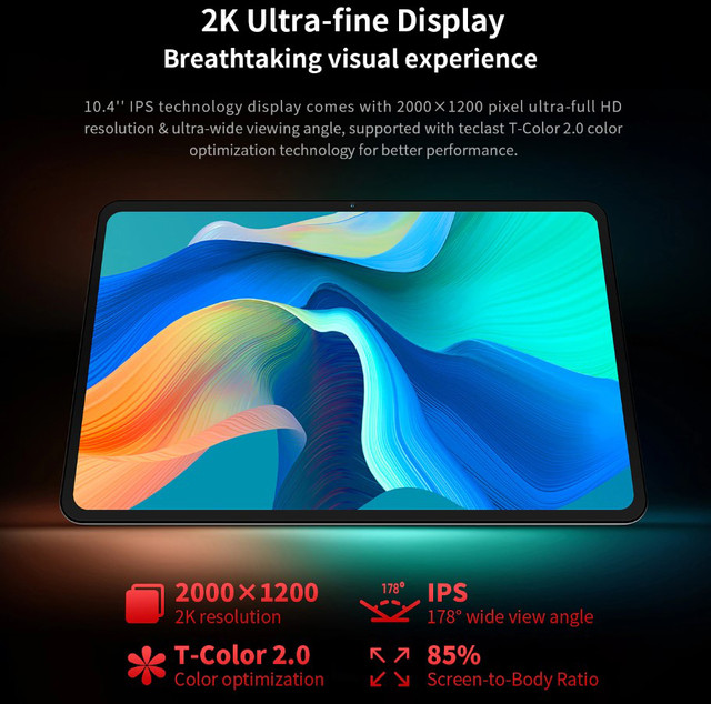 Планшет Teclast T40S (TL-102958) – це стильний та потужний пристрій з великим 10,4-дюймовим IPS-екраном, який забезпечує високу якість зображення та насичені кольори. Роздільна здатність екрану складає 2K (2000x1200 пікселів), що дозволяє насолоджуватися деталізацією та чіткістю контенту. Планшет оснащений процесором MediaTek MT8183, що включає вісім ядер та використовує 12-нанометрову технологію виробництва. Цей процесор забезпечує високу продуктивність та дозволяє плавно виконувати різні завдання, включаючи мультимедійні програми, ігри та багатозадачність. Пристрій має 8 ГБ оперативної пам'яті (+ 8 ГБ віртуальної пам'яті), що забезпечує плавну та стабільну роботу системи. Вбудованої пам'яті достатньо для зберігання великої кількості файлів та програм, а також її можна розширити за допомогою картки microSD. Teclast T40S підтримує Wi-Fi на частоті 2.4 та 5 ГГц, що забезпечує стабільне та швидке підключення до Інтернету. Також підтримується бездротовий Bluetooth 5 з іншими пристроями, такими як навушники, клавіатура або колонки. Планшет має дві камери – 5 Мп фронтальну камеру та 13 Мп основну камеру зі спалахом. Це дозволяє знімати якісні фотографії та відеозаписи, а також здійснювати відеодзвінки з високою якістю зображення. Пристрій працює на операційній системі Android 12, що забезпечує широкі можливості інтерфейсу користувача і доступ до безлічі програм в Google Play Store. Teclast T40S має стильний сірий металевий корпус, що надає планшету елегантного та сучасного вигляду. Вага складає всього 475 г, що робить його портативним та зручним для перенесення. В цілому, Teclast T40S (TL-102958) – це потужний та функціональний планшет з яскравим екраном, високою продуктивністю, просторою пам'яттю та стильним дизайном, ідеальним для розваг, роботи та повсякденного використання. ОПЕРАЦІЙНА СИСТЕМА Операційна система — Android 12 ДИСПЛЕЙ Діагональ дисплея — 10.4" Роздільна здатність дисплея — 1920×1200 пікс. Матриця — IPS Щільність пікселів — 224 ppi ПАМ'ЯТЬ Вбудована пам'ять — 128 ГБ Оперативна пам'ять — 8 ГБ (+ 8 ГБ віртуальної пам'яті) Слот для картки пам'яті — Є Підтримка карт пам'яті — microSD до 1 Тб ПРОЦЕСОР Процесор — MediaTek MT8183 Кількість ядер процесора — Восьмиядерний Частота процесора — 2.0 ГГц Графічний процесор — ARM Mali-G72 ЗВ'ЯЗОК Кількість SIM-карток — Без SIM-картки БЕЗПРОВІДНІ КОМУНІКАЦІЇ NFC — Немає Bluetooth — Bluetooth 5.0 Wi-Fi — 802.11 a/b/g/n/ac Навігація — GPS КАМЕРА Основна камера — 13 Мп Фронтальна камера — 5 Мп АУДІО Стереозвук — Є ІНТЕРФЕЙСИ Роз'єм для навушників — Є, mini-Jack (3.5 мм) Інтерфейси та підключення — USB Type-С, OTG КОРПУС Матеріал корпусу — Метал Стандарт захисту — Без захисту Технології — Акселерометр, Цифровий компас АКУМУЛЯТОР Місткість акумулятора — 6000 мАг ГАБАРИТИ Розміри - 248 х 157 х 8 мм Вага - 475 г КОМПЛЕКТАЦІЯ Планшет, Кабель USB Type-C, Скріпка, Зарядний пристрійTeclast T40S