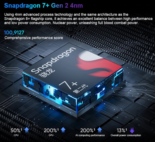 Экран (6.74", AMOLED, 1240x2772, 144 Гц) / Qualcomm Snapdragon 7+ Gen2 (2.91 ГГц) / Основная камера 64 Мп + 8 Мп + 2 Мп, Фронтальная камера: 16 Мп / RAM 12 ГБ / 256 ГБ встроенной памяти / 3G / 4G (LTE) 5G/ GPS / ГЛОНАСС / Galileo / поддержка 2х SIM-карт (Nano SIM + Nano SIM) / Realme UI 4.0, Android 13 / 5500 мА*ч Китайская компания Realme представила доступный смартфон Realme GT Neo 5 SE, на который был сосредоточен особый интерес, подогреваемый тизерами в последнее время. Этот аппарат является более доступной версией модели Realme GT Neo 5, которая в феврале стала первым в мире смартфоном с быстрой зарядкой мощностью 240 Вт. Новая модель обладает немного скромнее характеристиками, но по более привлекательной цене. Новый смартфон оснащен 6,74-дюймовой плоской OLED-панелью разрешением 1,5K (1240 x 2772 пикселя), обладающей кадровой частотой 144 Гц и пиковой яркостью 1400 кд/м². В верхней части дисплея расположена врезанная 16-мегапиксельная фронтальная камера. Смартфон также оснащен основной тройной камерой с разрешением 64 Мп, 8 Мп и 2 Мп соответственно. Емкость аккумулятора составляет 5500 мА·ч, и он поддерживает зарядку мощностью 100 Вт. Интересно, что Realme GT Neo 5 SE — второй телефон в мире после Redmi Note 12 Turbo, оснащенный платформой Qualcomm Snapdragon 7 Plus Gen 2. Он сопровождается оперативной памятью LPDDR5x и флэш-памятью UFS 3.1. Самая дорогая версия предлагает 16 ГБ ОЗУ и 1 ТБ памяти, но на устройстве нет слота для карт памяти microSD. Телефон поддерживает две SIM-карты, 5G, Wi-Fi 6, Bluetooth 5.2, GPS, NFC, ИК-порт, USB-C, два стереодинамика и аудиоразъем 3,5 мм. Он работает на Android 13 с оверлеем Realme UI 4.0. ХАРАКТЕРИСТИКИ: Материал корпуса — Пластик, Металл, Стекло Задняя крышка — Матовая с глянцевыми вставками Тип корпуса — Моноблок (неразборный) ПРОГРАММНЫЕ ХАРАКТЕРИСТИКИ Операционная система — Android 13 Фирменная оболочка — Realme UI 4.0 СВЯЗЬ Количество SIM-карт — 2 SIM Тип SIM-карты — Nano-SIM Тип слота — SIM + SIM Стандарты связи — GPRS, GSM, 3G (UMTS, HSUPA, HSPA), 4G (LTE), 5G, VoLTE ЭКРАН Диагональ — 6.74" Тип матрицы — Super Fluid AMOLED Разрешение — 1240 x 2772 пикс. Описание экрана: ПАМЯТЬ Объем оперативной памяти — 12 Gb Объем встроенной памяти — 256 Gb Слот расширения microSD — Нет ПРОЦЕССОР Процессор — Qualcomm Snapdragon 7+ Gen2 Количество ядер — 8 ядер Частота ядер процессора — 1x2.91GHz Cortex X2 + 3x2.49GHz Cortex A710 + 4x1.80GHz Cortex A510 Графический процессор — Adreno 725 КАМЕРА Основная камера — 64 Мп + 8 Мп + 2 Мп Особенности: Фронтальная камера — 16 Мп Особенности: ИНТЕРФЕЙСЫ Аудио выход — Нет Интерфейсный разъем — USB Type C (USB 2.0), OTG ЗВУК Стереозвук — Есть (Hi-Fi) Шумоподавление — Есть БЕСПРОВОДНЫЕ ТЕХНОЛОГИИ Wi-Fi — 802.11ac Bluetooth — Есть (v 5.3, A2DP, LE, aptX HD) GPS — GPS (L1+L5), GLONASS, BDS, GALILEO, QZSS NFC — Есть IrDA — Есть, Благодаря встроенному инфракрасному излучателю может использоваться как пульт дистанционного управления для телевизора, ТВ приставки, кондиционера, очистителя воздуха, а также другого оборудования. ТЕХНОЛОГИИ Акселерометр, Датчик приближения, Датчик освещенности, Гироскоп, Датчик отпечатка пальцев (под дисплеем), Разблокировка по лицу, Компас БАТАРЕЯ Аккумуляторная батарея — 5500 mAh (несъемная) Поддержка быстрой зарядки — 100 Вт ГАБАРИТЫ Размер (ШхВхТ) — 163.9 x 75.8 x 8.95 мм Вес — 193 г КОМПЛЕКТАЦИЯ Характеристики и комплектация товара могут быть изменены производителем без уведомления. Realme GT NEO 5 SE 5G 12/256Gb