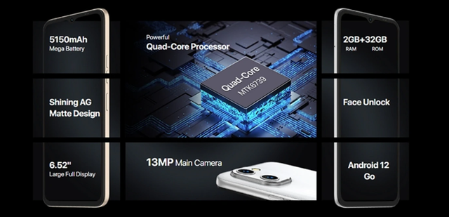Смартфон UMIDIGI C1 випущено у 2022 році. Він оснащений чіпсетом MediaTek MT6739, 2 GB оперативної пам'яті та 32GB вбудованої пам'яті. UMIDIGI C1 працює на Android OS v12.0 Go із коробки. Основна камера 13 МП (F/2.2) + камера глибини 2 МП (F/2.2). Особливості: стабільна нічна ручна зйомка, режим макрозйомки, портретний режим, режим панорами, HDR, AI Beautify, подвійний світлодіодний спалах, розпізнавання осіб, фільтри в реальному часі. Функції відео із задньої камери: запис відео 1080p, 720p, 30 кадрів за секунду. Фронтальна камера 5 МП, апертура F/2.2. Функції відео з передньої камери: запис відео 1080p, 720p, 30 кадрів за секунду. UMIDIGI C1 працює від акумулятора великої ємності 5150 мАг, використовується протягом тривалого часу. ХАРАКТЕРИСТИКИ КОРПУС Матеріал корпусу — Пластик Стандарт захисту — Без захисту ОПЕРАЦІЙНА СИСТЕМА Операційна система — Android 12 Go ЗВ'ЯЗОК Кількість SIM-карт — 2 SIM Формат SIM-карти — Nano-SIM Тип слота — SIM + Гібридний (SIM або MicroSD) Стандарти зв'язку — GSM, 3G, 4G (LTE) ЕКРАН Діагональ екрану — 6.52" Тип екрану — IPS Роздільна здатність екрана — 1600x720 Частота оновлення екрану — 60 Гц Щільність пікселів — 269 ppi ПРОЦЕСОР Процесор — MediaTek MT6739 Кількість ядер — 4 Частота процесора — 1.5 ГГц Графічний процесор — PowerVR GE8300 ПАМ'ЯТЬ Внутрішня пам'ять — 32 ГБ Оперативна пам'ять — 2 ГБ Слот для картки пам'яті — Є Підтримка карт пам'яті — microSD до 256 Гб КАМЕРА Камера — 13 Мп + 2 Мп Діафрагма — ƒ/ 2.2 + ƒ/ 2.2 Відеозйомка — MPEG4, 30 fps Фронтальна камера — 5 Мп ƒ/ 2.2 БЕЗДРОТОВІ ТЕХНОЛОГІЇ Wi-Fi — IEEE 802.11 a/b/g/n Технологія GPS — GPS Супутникова система — GPS, ГЛОНАСС, Beidou, Galileo Bluetooth — 4.2 NFC — Немає Бездротова зарядка — Немає Інфрачервоний порт — Немає FM-тюнер — Є ІНТЕРФЕЙСИ Інтерфейси та підключення — USB Type-C Додатково — OTG ТЕХНОЛОГІЇ Акселерометр, Датчик освітлення, Датчик наближення, Сканер обличчя АКУМУЛЯТОР Місткість акумулятора — 5150 mAh Потужність зарядки — 10 Вт Швидка зарядка — Немає ГАБАРИТИ Розміри — 164.16 x 76.44 x 8.75 мм Вага — 192 г КОМПЛЕКТАЦІЯ Смартфон, USB-кабель, Зарядний пристрій, Штифт, Інструкція Характеристики та комплектація товару можуть бути змінені виробником без попередження.UMIDIGI C1 2/32GB