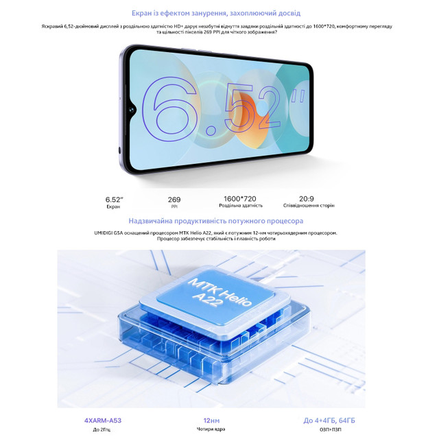 Описание UMIDIGI G5A 4/64GB Space Gray Гарантія 1 Рік