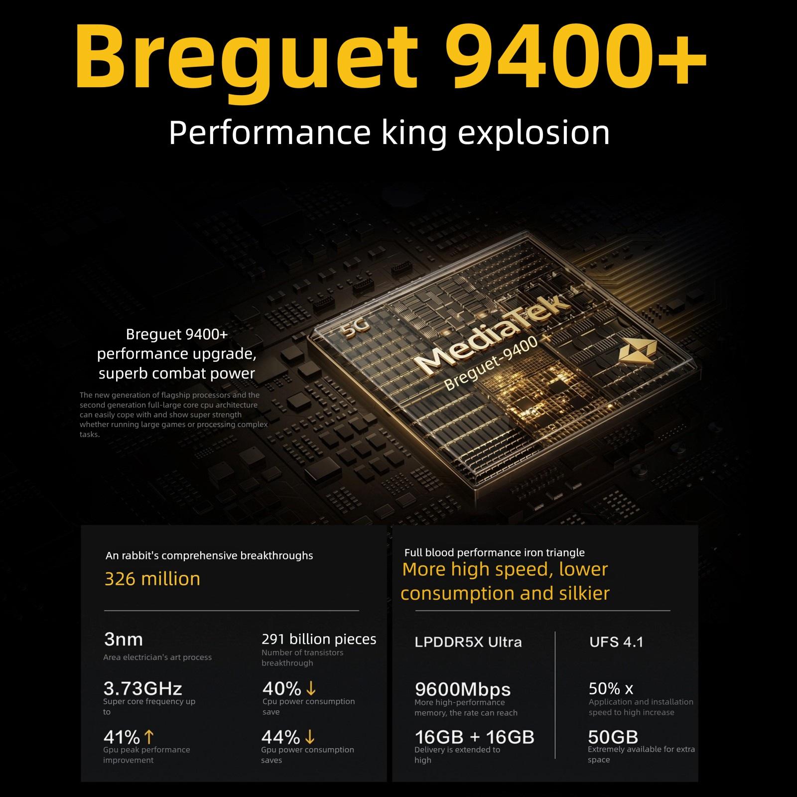 iQOO Z10 Turbo Plus — це потужний сучасний смартфон, створений для вимогливих користувачів, геймерів та тих, хто цінує продуктивність і автономність. Пристрій має стильний дизайн з тонкими рамками та великим дисплеєм, а також корпус із якісними матеріалами та практичністю для щоденного використання. Смартфон захищений від пилу та бризок відповідно до стандарту IP65, що означає стійкість до пилу та водяних струменів (але не повне занурення у воду). Він комфортно лежить в руці, має оптимальні габарити і вагу близько 212 г, що робить його зручним для тривалого використання. Пристрій оснащений великим 6,78-дюймовим AMOLED-екраном з роздільною здатністю 2800х1260 пікселів (≈1.5K), що забезпечує яскраве, реалістичне та контрастне зображення. Панель підтримує оновлення частоти 144 Гц для плавної анімації, ігор та прокручування, а технологія HDR гарантує кращу передачу кольору й глибокі чорні відтінки. Дисплей також має високу піксельну яскравість і широкий колірний елемент 100 % DCI-P3, що робить його комфортним навіть на сонці. Серцем смартфона є флагманський процесор MediaTek Dimensity 9400 Plus, побудований на передовому техпроцесі та оптимізований для високої продуктивності при низькому енергоспоживанні. Він має потужний графічний адаптер Immortalis-G925, який відмінно справляється з іграми, важкими додатками та багатозадачністю. Смартфон комплектується 12 ГБ або 16 ГБ оперативної пам'яті LPDDR5X та 256 ГБ або 512 ГБ UFS 4.1 швидкого доступу, що забезпечує блискавичний запуск програм і швидку роботу системи. iQOO Z10 Turbo Plus має подвійну основну камеру, в складі якої 50 МП основний сенсор Sony LYT-600 з широким кутом та оптичною стабілізацією (OIS) і 8 МП ультраширокий модуль для пейзажів і групових кадрів. Основна камера здатна знімати відео 4K, а також підтримує HDR, різні режими зйомки та стабілізацію. Фронтальна камера 16 МП забезпечує чітке селфі та якісні відеодзвінки з роздільною здатністю до 1080p. Однією з найяскравіших особливостей iQOO Z10 Turbo Plus є величезний акумулятор ємністю 8000 мА·год, що забезпечує довгий час автономної роботи при щоденному використанні — від ігор та відео до навігації і соціальних мереж. Смартфон підтримує швидку проводову зарядку 90 Вт, що дозволяє швидко відновити заряд через порт USB-C, і забезпечує максимальний комфорт при інтенсивному використанні. iQOO Z10 Turbo Plus пропонує повний набір сучасних технологій комунікації та зручностей: Смартфон працює на OriginOS 5 на базі Android 15, що гарантує сучасний інтерфейс, безліч функцій та тривалі оновлення ХАРАКТЕРИСТИКИ КОРПУС Матеріал корпусу — Пластик, Алюмінієвий сплав Ступінь захисту — IP65 (Захист від бризок, води та пилу) ОПЕРАЦІЙНА СИСТЕМА Операційна система — Android 15 Фірмова оболонка — OriginOS 5 ЗВ'ЯЗОК Кількість SIM-карт — 2 SIM Формат SIM-карти — Nano-SIM Тип слота — SIM + SIM Стандарти зв'язку — GSM, 3G, 4G (LTE), 5G ЕКРАН Діагональ екрану — 6.78" Тип екрану — AMOLED Роздільна здатність екрана — 2800х1260 пікс. Частота оновлення екрану — 144 Гц Щільність пікселів — 453 ppi ПРОЦЕСОР Процесор — MediaTek Dimensity 9400+ Кількість ядер — 8 Частота процесора — 1x 3.73 ГГц ARM Cortex-X4, 3x 3.3 ГГц ARM Cortex-X4, 4x 2.4 ГГц ARM Cortex-A720 Графічний процесор — Immortalis-G925 ПАМ'ЯТЬ Внутрішня пам'ять — 256 ГБ Оперативна пам'ять — 12 ГБ (+ 12 ГБ віртуальної пам'яті) Підтримка карт пам'яті — Немає КАМЕРА Камера — 50 МП + 8 МП Фронтальна камера — 16 МП БЕЗДРОТОВІ ТЕХНОЛОГІЇ Wi-Fi — 7 (802.11be) Технологія GPS — A-GPS, GPS Супутникова система — GPS, Г