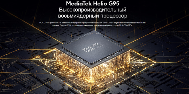 Оригинальная трехмерная изогнутая спинка имеет эргономичный дизайн, обеспечивающий оптимальный захват, а уникальный дизайн Deco придает телефону потрясающий вид. Более интимная защита, больше спокойствия в использовании. Лучший в своем классе AMOLED DotDisplay с высокой четкостью, потрясающими цветами и потрясающей яркостью обеспечивает лучшее визуальное восприятие. Дизайн с двумя динамиками, стереофонический объемный звук позволяют вам наслаждаться захватывающими впечатлениями во время развлечений. 64-мегапиксельная камера с высоким разрешением создает захватывающие дух кристально чистые изображения. Четкость и цвета дополнительно улучшены передовым алгоритмом на основе искусственного интеллекта, что позволяет вам экспериментировать, как никогда раньше. Датчики окружающего света на 360 ° автоматически регулируют яркость, эффективно снижая нагрузку на глаза. POCO M5s оснащен восьмиъядерным процессором MediaTek Helio G95, который использует два высокопроизводительных ядра Cortex-A76, дополненных мощным графическим процессором Mali-G76 MC4. Сочетание ПЗУ UFS 2.2 и ОЗУ LPDDR4X обеспечивает более плавную работу приложений и быструю загрузку больших игр, что позволяет вам оставаться на шаг впереди конкурентов. Благодаря технологии быстрой зарядки мощностью 33 Вт вы можете быстро зарядить аккумулятор, когда у вас заканчивается заряд. ХАРАКТЕРИСТИКИ: Вид прошивки — Международная (Global) Материал корпуса — Пластик, Стекло Тип корпуса — Моноблок (неразборный) Защищенность — IP53, Защита от брызг, воды и пыли ПРОГРАММНЫЕ ХАРАКТЕРИСТИКИ Операционная система — Android 12.0 Фирменная оболочка — MIUI 13 для POCO СВЯЗЬ Количество SIM-карт — 2 SIM Тип SIM-карты — Nano-SIM Тип слота — SIM + SIM + MicroSD Стандарты связи — GPRS, GSM, 3G (UMTS, HSUPA, HSPA), 4G (LTE) Диапазоны сети: ЭКРАН Диагональ — 6.43" Разрешение — 2400x1080 FHD+ Тип матрицы — AMOLED DC Dimming — Есть Частота обновления экрана — 60 Гц Количество цветов — 16 миллионов Плотность пикселей — 409 ppi Защитное стекло — Corning Gorilla Glass 3 ПРОЦЕССОР Процессор — MediaTek Helio G95 Количество ядер — 8 ядер (2 ядра по 2.05 ГГц: Cortex-A76 + 6 ядер по 2 ГГц: Cortex-A55) Графический процессор — Mali-G76 3EEMC4 ПАМЯТЬ Объем памяти — 4 Gb Объем флеш-памяти — 128 Gb Слот расширения microSD — microSD до 1 Тб КАМЕРА Основная камера — 64 Мп + 8 Мп + 2 Мп + 2 Мп Диафрагма — f/1.8 + f/2.2 + f/2.4 + f/2.4 Запись видео — 4K видео Фокусировка — Фазовая (PDAF) Вспышка основной камеры — Есть LED Фронтальная камера — 13 Мп Диафрагма — f/2.4 МУЛЬТИМЕДИА Аудио выход — Есть 3,5 Hi-Res Audio Интерфейсный разъем — USB Type-C 2.0 FM-Радио — Есть ЗВУК Динамики — Стерео ИНТЕРФЕЙСЫ Wi-Fi — Wi-Fi 5 (802.11 a/b/g/n/ac) Bluetooth — Есть (v 5.0) GPS — A-GPS, GPS NFC — Есть Инфракрасный порт — Есть КОММУНИКАЦИИ Навигация — GPS, ГЛОНАСС, Beidou, Galileo Датчики — Датчик приближения, Датчик окружающего освещения, Акселерометр, Гироскоп, Электронный компас, Сканер отпечатка пальца, Датчик SAR БАТАРЕЯ Аккумуляторная батарея — 5000 mAh (несъемная) Поддержка быстрой зарядки — 33 Вт ГАБАРИТЫ Размер (ШхВхТ) — 160.46 x 74.5 x 8.29 мм Вес — 178.8 г КОМПЛЕКТАЦИЯ Характеристики и комплектация товара могут быть изменены производителем без уведомления. Xiaomi POCO M5S 4/128GB