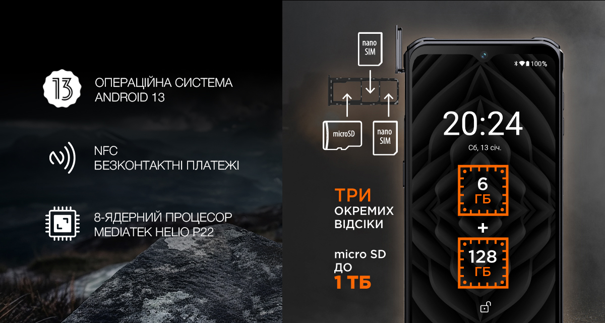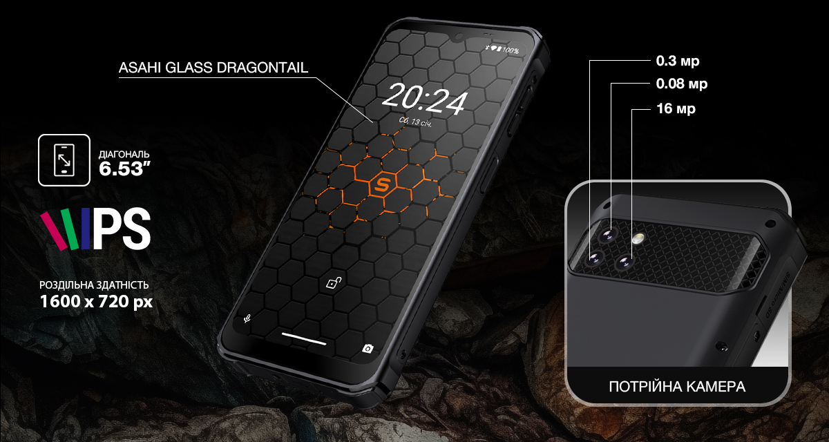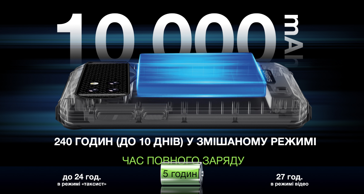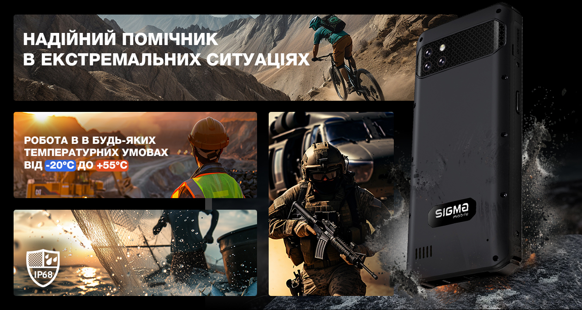 Sigma X-treme PQ56 — це витривалий смартфон із надзвичайно потужною батареєю ємністю 10 000 мА·г, яка дозволяє залишатися на зв’язку навіть у найважчих умовах. Завдяки підтримці функції павербанка та сертифікованому захисту за стандартом IP68, цей пристрій стане надійним партнером у будь-яких пригодах — від походів до щоденних викликів міського життя. Смартфон оснащений 6,53-дюймовим IPS-дисплеєм з HD+ роздільною здатністю 720×1600 пікселів. Яскраве, чітке зображення та реалістичні кольори забезпечують комфорт під час перегляду фільмів, фотографій чи просто роботи з додатками. Це дисплей, який дарує задоволення Всередині Sigma X-treme PQ56 працює 8-ядерний процесор MediaTek Helio P22 з частотою 2 ГГц у поєднанні з графічним ядром IMG PowerVR. Чистий Android та сертифікація Google Play гарантують безпечне та зручне використання сервісів. Смартфон має функцію NFC, підтримку двох nanoSIM-карт та microSD до 1 ТБ, що дозволяє адаптувати пристрій під особисті потреби. Завдяки акумулятору на 10 000 мА·г смартфон забезпечує до 2 діб автономної роботи в режимі "таксист" (активна навігація, дзвінки, додатки), до 37 годин перегляду відео по Wi-Fi, до 10 діб у змішаному режимі. Повна зарядка займає лише 5 годин — чудовий показник для такої ємності. Корпус смартфона виконано з використанням подвійної технології лиття пластику та гуми, що у поєднанні з внутрішньою титановою пластиною-демпфером забезпечує високу стійкість до механічних ушкоджень. Пристрій впевнено функціонує у температурному діапазоні від -20°C до +55°C, витримуючи найекстремальніші умови. Sigma X-treme PQ56 — це ще й повноцінний павербанк. Просто під’єднуйте інші пристрої через кабель і заряджайте їх. Завдяки підтримці OTG, смартфон сумісний з клавіатурами, мишками та USB-накопичувачами, що розширює можливості його використання. Завдяки сертифікації IP68, смартфон захищений від вологи, пилу та бруду, а титанова пластина-демпфер підвищує його ударостійкість. Це надійний інструмент для роботи в польових умовах, будівництві або активному відпочинку. Sigma X-treme PQ56 оснащений усім необхідним для точної навігації: GPS, Glonass, компас, акселерометр, гіроскоп та датчик освітленості. Такий набір сенсорів забезпечує впевненість у дорозі — як у місті, так і в дикій природі. ОПЕРАЦІЙНА СИСТЕМА Операційна система — Android 13 КОРПУС Стандарт захисту — IP68 Захист корпусу — Повний захист від пилу та тривале занурення у воду на глибину, яка визначається виробником (зазвичай понад 1 метр) Матеріал корпусу — Пластик, Полікарбонат, Гума підвищеної міцності та зносостійкості, Скло ЗВ'ЯЗОК Кількість SIM-карт — 2 SIM Формат SIM-карти — Nano-SIM Тип слота SIM-карти — SIM + SIM + MicroSD Стандарти зв'язку — GSM, 3G, 4G (LTE) ЕКРАН Діагональ екрану — 6.53" Тип екрану — IPS Роздільна здатність екрана — 1600х700 пікс Частота оновлення екрану — 60 Гц Щільність пікселів — 269 ppi Захист скла — Asahi Glass ПРОЦЕСОР Процесор — MediaTek Helio P22 Кількість ядер — 8 Частота процесора — 2.0 ГГц Графічний процесор — PowerVR GE8320 ПАМ'ЯТЬ Внутрішня пам'ять — 128 ГБ Оперативна пам'ять — 6 ГБ Слот для картки пам'яті — Є, microSD 1 ТБ КАМЕРА Камера — 16 МП + 0.3 МП + 0.08 МП Фронтальна камера — 5 МП БЕЗДРОТОВІ ТЕХНОЛОГІЇ Wi-Fi — 5 (802.11ac) Технологія GPS — A-GPS, GPS Супутникова система — GPS, ГЛОНАСС, Galileo, Beidou Bluetooth — 5.0 VoLTE — Є NFC — Є Інфрачервоний порт — Немає ІНТЕРФЕЙСИ Аудіо вихід (3.5 мм) — Немає Роз'єм для синхронізації — USB Type-C 2.0 ЗАХИЩЕННІСТЬ IP (ступінь захисту від проникнення) 