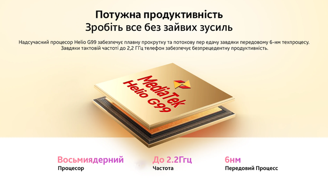 Ulefone Note 17 Pro — смартфон, який пропонує вам унікальні можливості! Сучасний дизайн, потужні технічні характеристики та дивовижні функції чекають на вас. AMOLED 3D curved 120 Hz дисплей забезпечує чітке і насичене зображення. Пориньте у барвисті світи з високою роздільною здатністю 2400x1080 на 6,78-дюймовому екрані. Чудова передача кольору і плавність динамічних змін нададуть вашому досвіду використання неповторний відтінок. Основна камера з роздільною здатністю 108 МП Samsung HM2 перетворить кожен момент на витвір мистецтва. Захоплюйте яскраві та детальні знімки, навіть за умов слабкого освітлення. А з функцією запису відео в 1080P за 30 FPS ви зможете оживити свої спогади. Технічні параметри викликають підвищений інтерес, особливо завдяки наявності процесора MediaTek Helio G99, 12+12 ГБ ОЗП, 256 ГБ ПЗП, що забезпечує високу продуктивність пристрою. Процесор вважається топовим на ринку, а оперативна пам'ять LPDDRX4 на частоті 2933 МГц забезпечує можливість виконання багатьох завдань одночасно. Вбудована пам'ять дозволяє зберігати велику кількість професійних програм. Не забувайте про додаткові можливості, такі як IR-передавач (пульт) для керування електронікою навколо вас. А 33W швидка зарядка гарантує, що ваш смартфон завжди буде готовим до дії. Ulefone Note 17 Pro - ваш надійний супутник у цифровому світі! Смартфон підтримує 2-х діапазонний WI-FI 2.4GHz & 5GHz ХАРАКТЕРИСТИКИ КОРПУС Матеріал корпусу — Пластик ПРОГРАМНІ ХАРАКТЕРИСТИКИ Операційна система — Android 13 ЗВ'ЯЗОК Стандарти зв'язку — 2G, 3G, 4G (LTE) Кількість SIM-карт — 2 SIM Тип SIM-карти — Nano-SIM Тип слота — SIM + SIM ЕКРАН Розмір екрану, дюйм — 6.78" Тип матриці — AMOLED Роздільна здатність екрана — 2400x1080 пікс. Full HD+ Частота оновлення — 120 Гц Щільність пікселів — 388 ppi Співвідношення сторін — 20:9 Співвідношення екран/корпус — 82% ПРОЦЕСОР Процесор — MediaTek Helio G99 Кількість ядер — 8 Частота — 2x2.2 ГГц Cortex-A76 + 6x 2.0 ГГц Cortex-A55 Графічний процесор — Mali-G57 MC2 ПАМ'ЯТЬ Оперативна пам'ять — 12 ГБ (+ 12 ГБ віртуальної пам'яті) Вбудована пам'ять — 256 ГБ Слот для картки пам'яті — Немає КАМЕРА Основна камера — 108 МП + 5 МП Фронтальна камера — 32 МП МУЛЬТИМЕДІА Аудіо вихід — Немає Роз'єм для синхронізації — USB Type-C КОМУНІКАЦІЇ Wi-Fi — 5 (802.11ac) Bluetooth — 5.2 Функція GPS — A-GPS, GPS, ГЛОНАСС, Beidou, Galileo, QZSS NFC — Є ІЧ-порт — Є VoLTE — Є ДАТЧИКИ Гіроскоп, Акселерометр, Компас, Датчик освітлення, Датчик наближення, Сканер відбитків пальців на екрані АКУМУЛЯТОР Місткість акумулятора — 5050 mAh (Незнімний) Швидка зарядка — Є Потужність зарядки — 33 Вт Можливість бездротової зарядки — Немає ГАБАРИТИ Розмір — 163.8 x 74.2 x 9 мм Вага — 198 г КОМПЛЕКТАЦІЯ Смартфон, Кабель Type-C, Блок живлення, Чохол, Інструмент для вилучення SIM-карти, Інструкція Характеристики та комплектація товару можуть бути змінені виробником без попередження.Ulefone Note 17 Pro 12/256GB