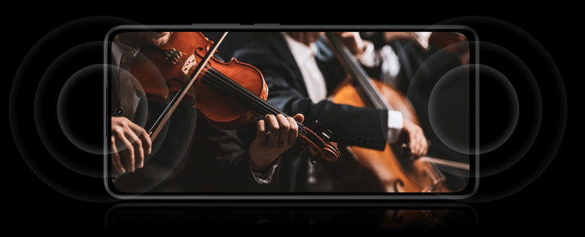 + Подвійні стереодинаміки для збільшення гучності на 300 %*, насиченого звуку та кольору